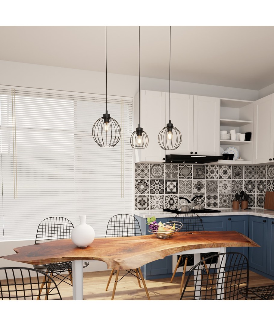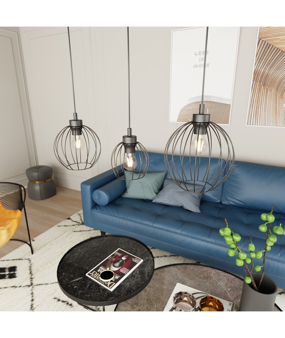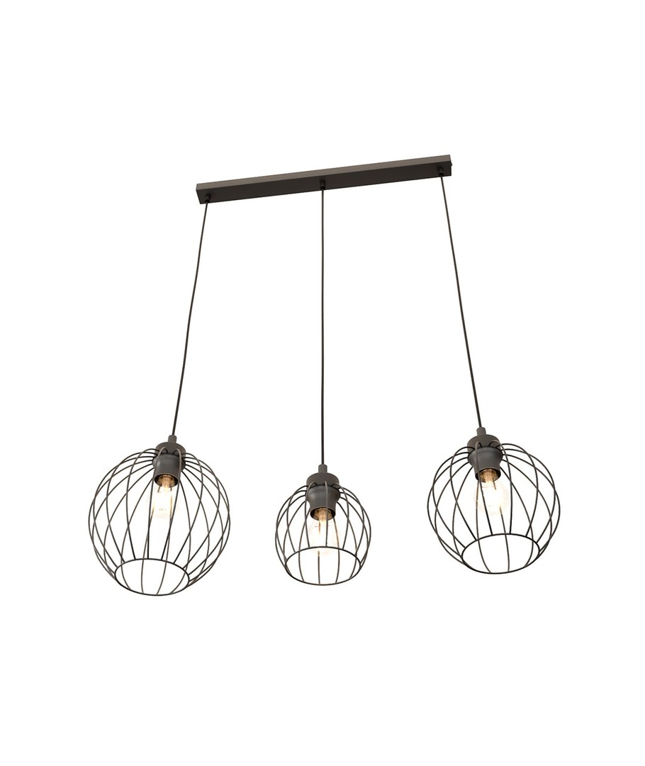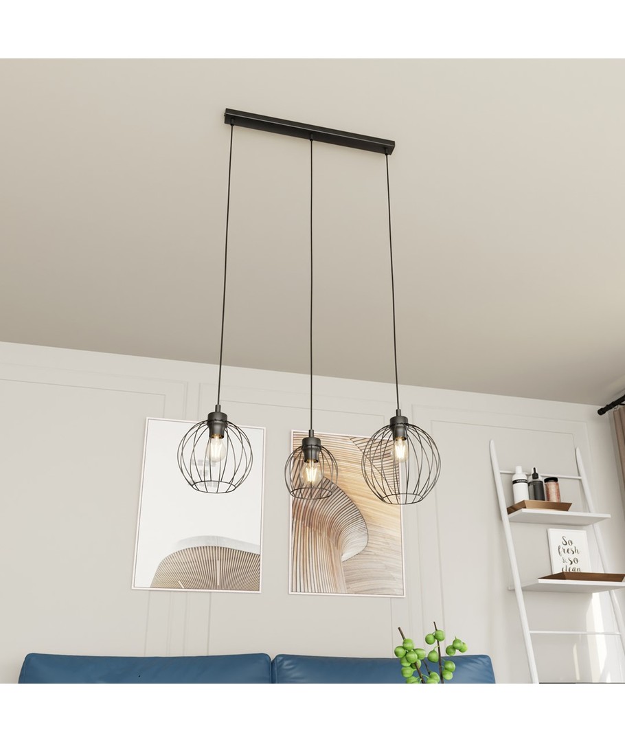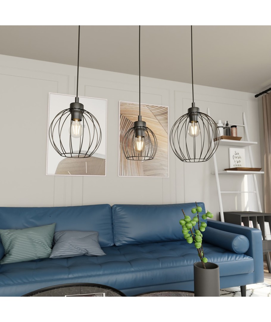 Nando 3 Sort pendellampe bringer en moderne tolkning av den klassiske tak-stilen inn i ditt hjem. Denne lampen er laget av solid, pulverlakkert stål som tilfører et røft og industrielt preg til ethvert rom. Med sine unike wireskjermer skaper Nando interessante lyseffekter som gir interiøret et snev av originalitet. Den er ideell for stuen, spisestuen eller kjøkkenet og har evnen til å forvandle disse områdene med sin tak-inspirerte stil. Med tre E27 sokler er denne lampen både funksjonell og stilfull.