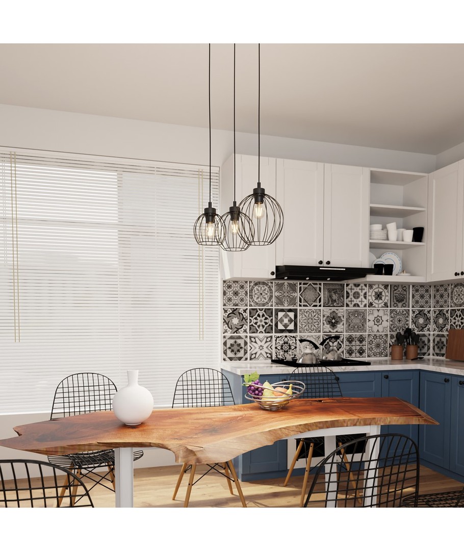 Nando 3PREM Sort pendellampe kombinerer moderne design med en rå industriell stil, som passer perfekt inn i det moderne hjemmet. Utført i solidt pulverlakkert stål, bringer denne lampen et unikt loft-utseende inn i din stue, spisestue eller kjøkken. Lampens åpne tråddesign skaper interessante lyseffekter, som tilfører karakter og originalitet til dine rom. Med justerbar høyde kan Nando tilpasses dine spesifikke behov, noe som gjør den både funksjonell og estetisk.