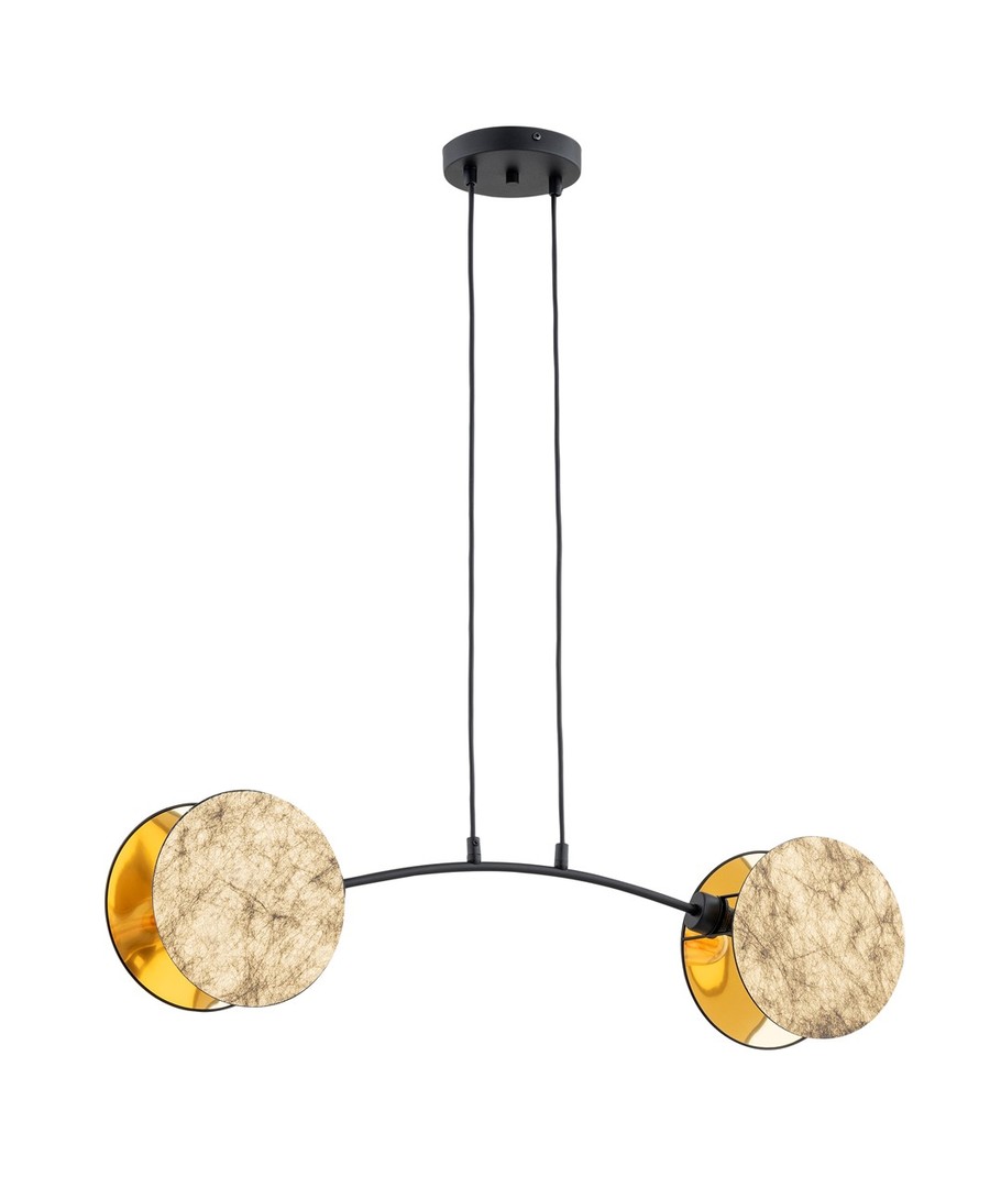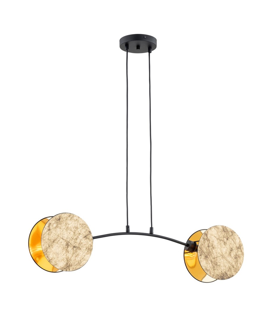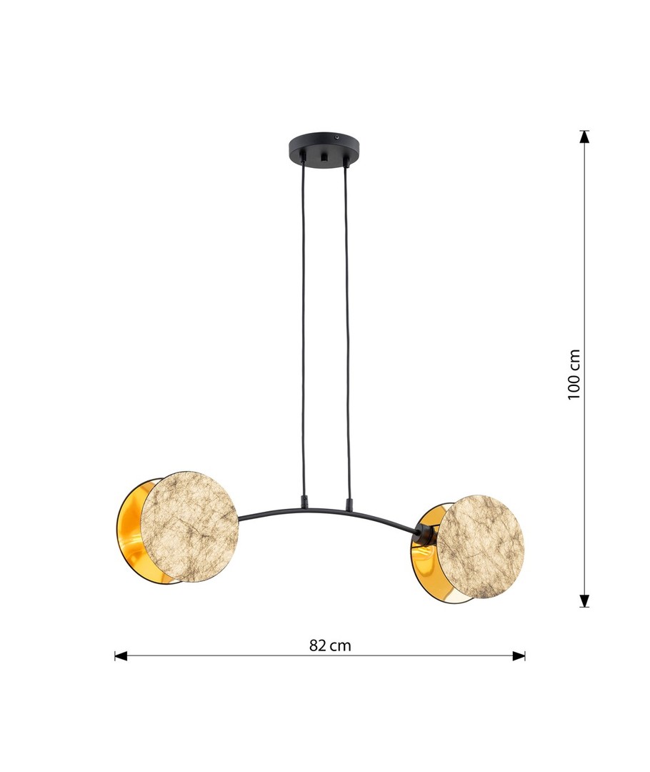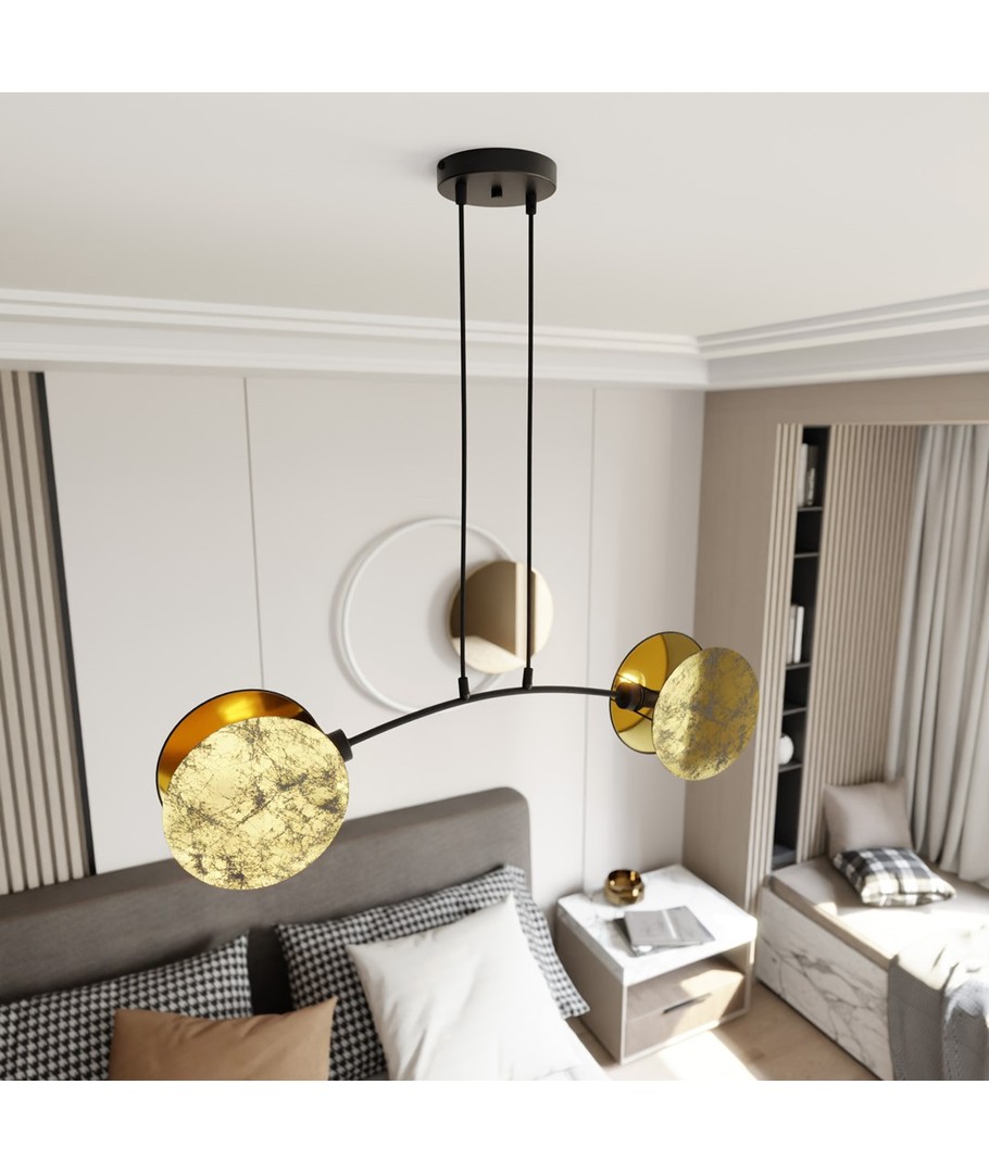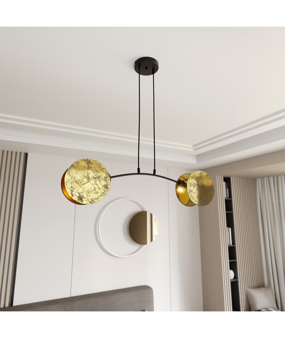 Denne stilfulle pendellampen gir et luksuriøst preg til enhver innredning. Med sitt gullfargede design fungerer den både som en funksjonell lyskilde og som et iøynefallende designelement.