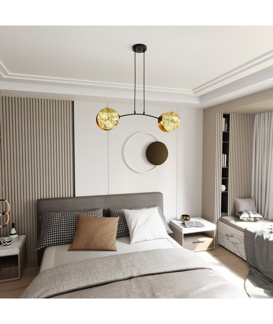 Denne gullfargede pendellampen er perfekt for de som ønsker å tilføre et sofistikert og glansfullt element til rommet, enten det er i stuen, spisestuen eller på et kontor. Den enkle, men elegante designen gjør den til et utmerket valg for å fremheve annen interiørdekorasjon.