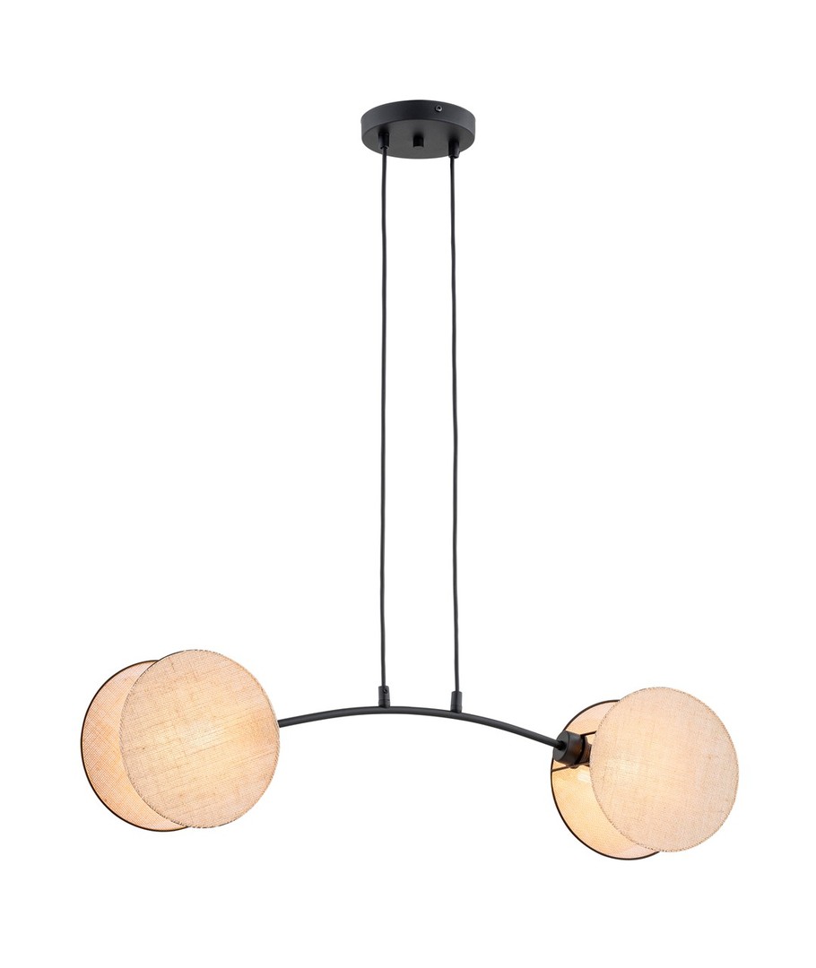 Motif 2 Naturlig pendellampe kombinerer moderne eleganse med innovativt design, som gir hjemmet ditt et unikt uttrykk. Lampen er designet med to sammenkoblede sirkulære skjermer som skaper et dekorativt og elegant motiv i rommet. Den er skapt med fokus på detaljer og bringer både funksjonalitet og stil til din innredning. Utført i pulverlakkerte stål med en beige stoffskjerm, gir lampen en subtil sjarm og unik atmosfære til enhver bolig. Perfekt for å lyse opp og dekorere områder der du ønsker å integrere moderne stil og varme.