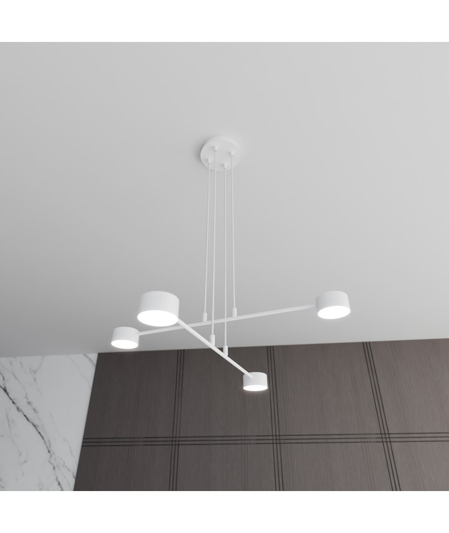 Opplev den stilfulle og minimalistiske skjønnheten i Modus 4 hvit pendellampe, som forener skandinavisk estetikk med et gjennomtenkt design. Med sine kryssende armer skaper lampen en harmonisk struktur som sprer eleganse og ro i ethvert rom. Denne lampen er ikke bare en lyskilde, men også et subtilt dekorativt element som komplementerer moderne innredning med sin enkle og moderne stil. Enten den plasseres i stuen eller kjøkkenet, vil Modus pendellampe tilføre en følelse av harmoni og modernitet.
