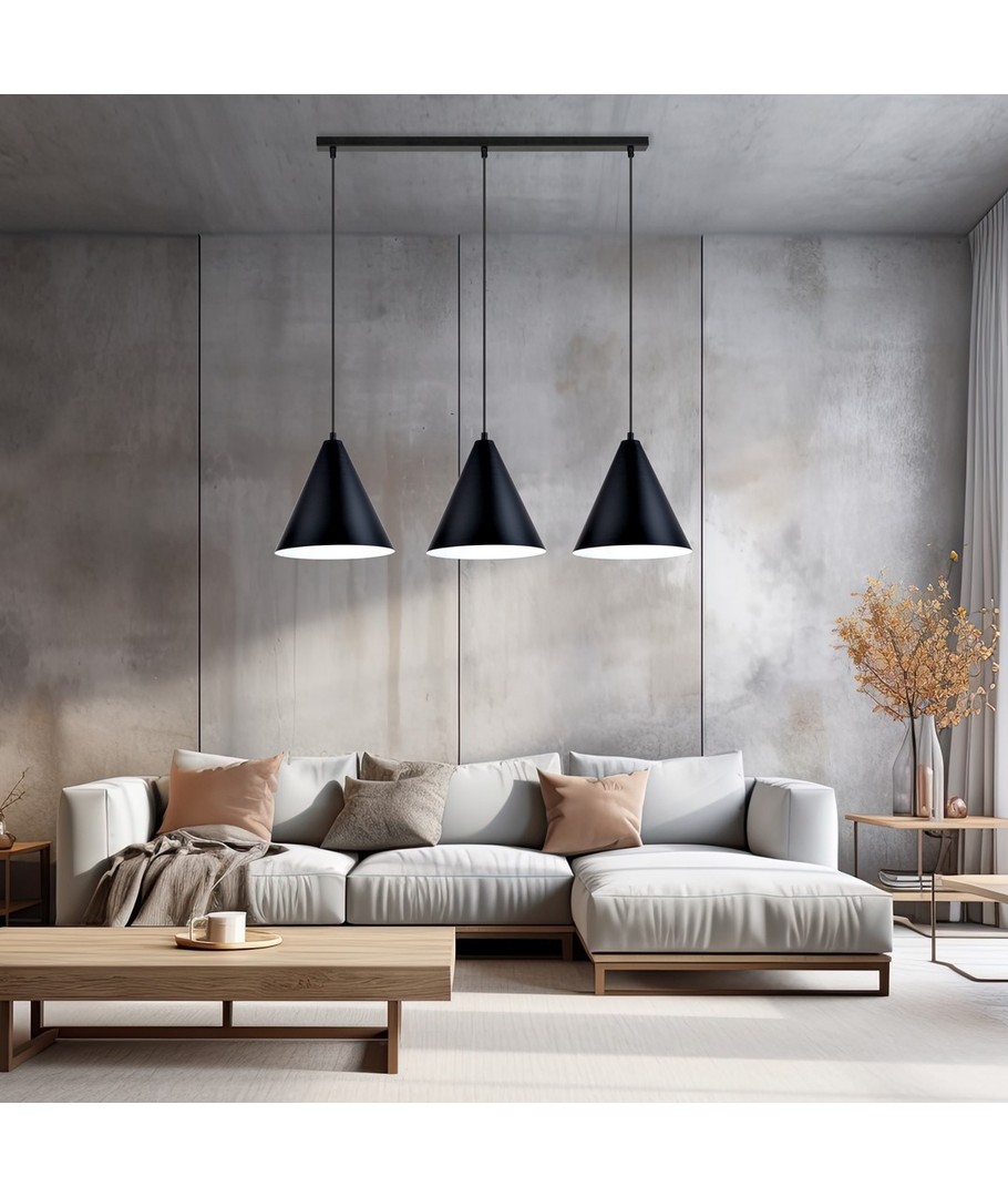 Lampens sorte kjegleformede skjerm med en hvit innvendig overflate sikrer ikke bare karakter, men optimerer også lysfordelingen ved å gi en behagelig og varm belysning.