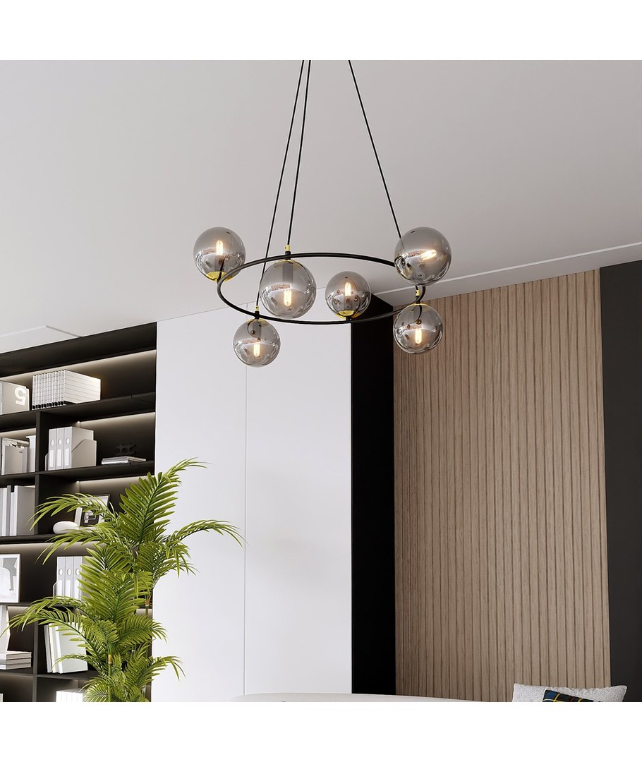 Innfør en elegant minimalisme i ditt hjem med Azura pendellampen. Den er fremstilt av svart stål, som harmonerer vakkert med lampeskjermen i grafitt. Lampens sirkulære design og ujevnt plasserte skjermer skaper en unik atmosfære som understreker et moderne og sofistikert interiør. Azura er det perfekte valget for dem som ønsker å legge til originalitet i rommet sitt med belysning som både er funksjonell og estetisk.