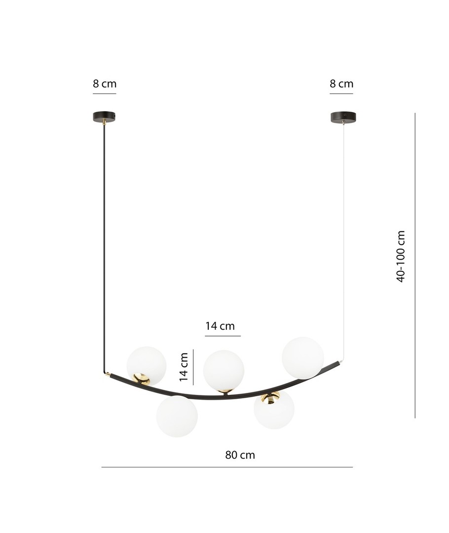 Oppgrader ditt hjem med den elegante Ritz 5 Sort/Opal pendellampe. Med sitt moderne design kombinert med funksjonalitet, passer denne lampen perfekt inn i forskjellige interiørstiler. Enten det er for stue, spisestue eller soverom, skaper denne pendellampen en behagelig atmosfære med sitt opale lys.