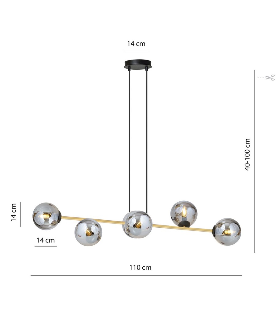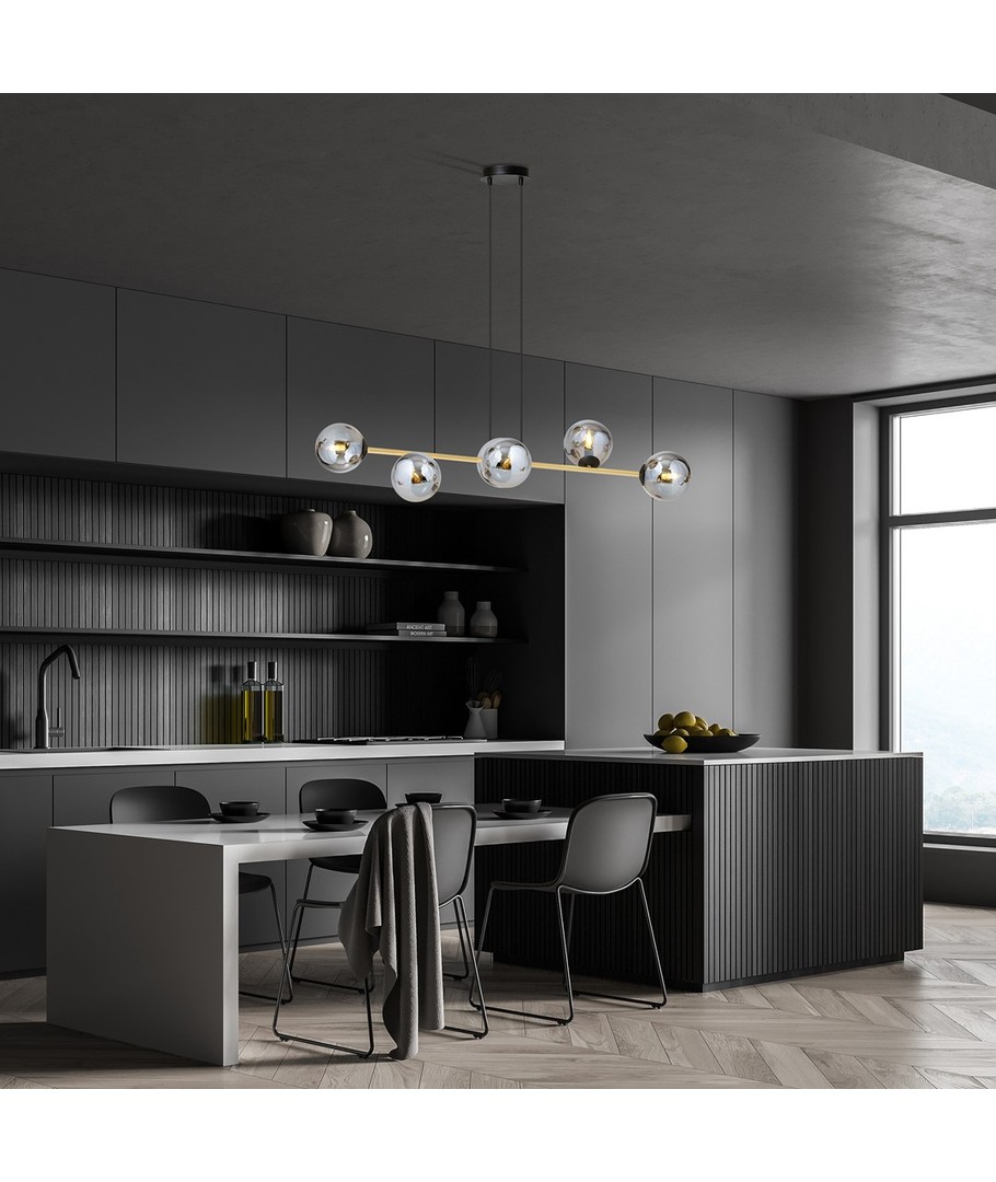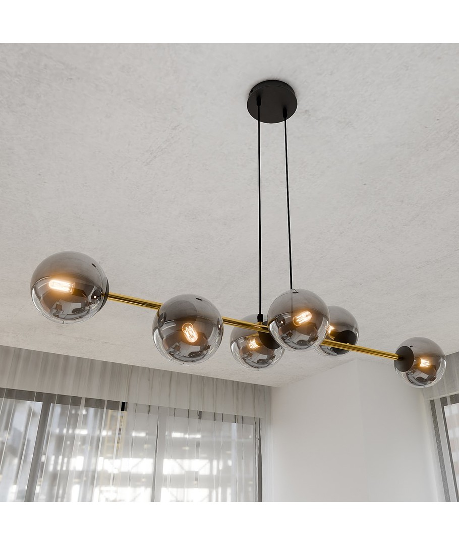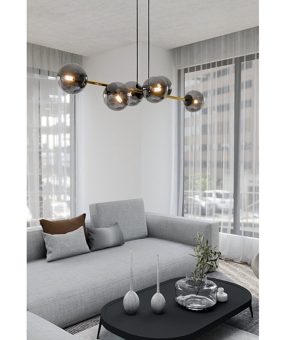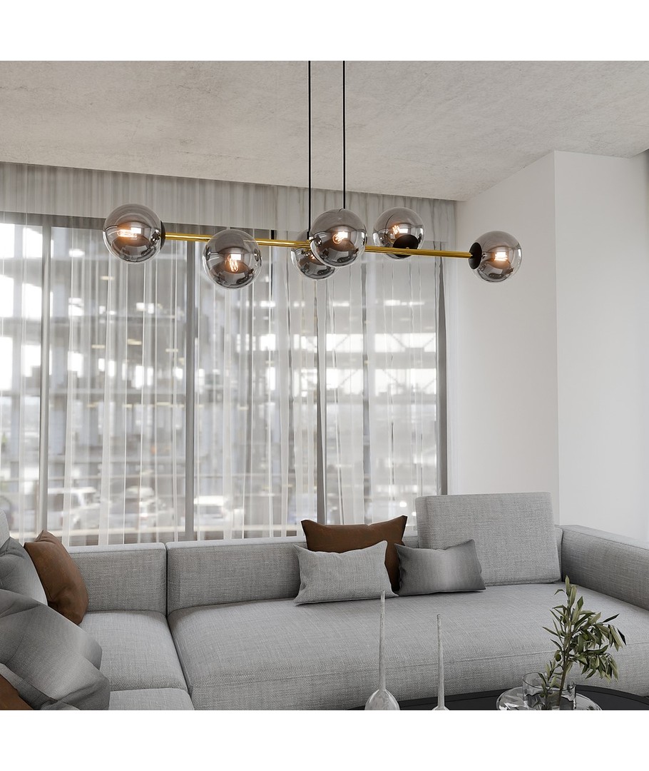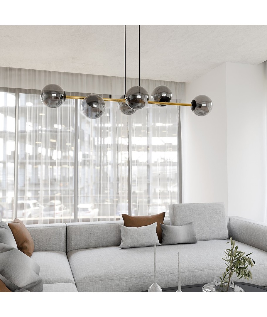 Opplev Gravity 6 pendellampe, en perfekt kombinasjon av minimalistisk design og glamorøse gulldetaljer, som tilfører hjemmet ditt en unik sjarm og eleganse. Denne lampen er ideell for både moderne og klassiske innredninger, der den tilfører karakter og skaper en sofistikert atmosfære. Produsert av materialer i høy kvalitet sikrer Gravity-seriens taklamper både holdbarhet og et fantastisk utseende i mange år. De elegante gulldetaljene kommer vakkert i kontrast med den minimalistiske formen, noe som gir interiøret ditt en livlig og glansfull fremtoning.