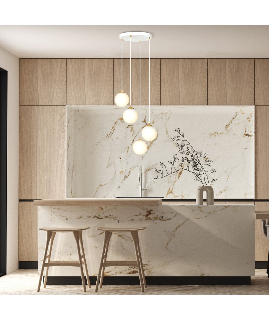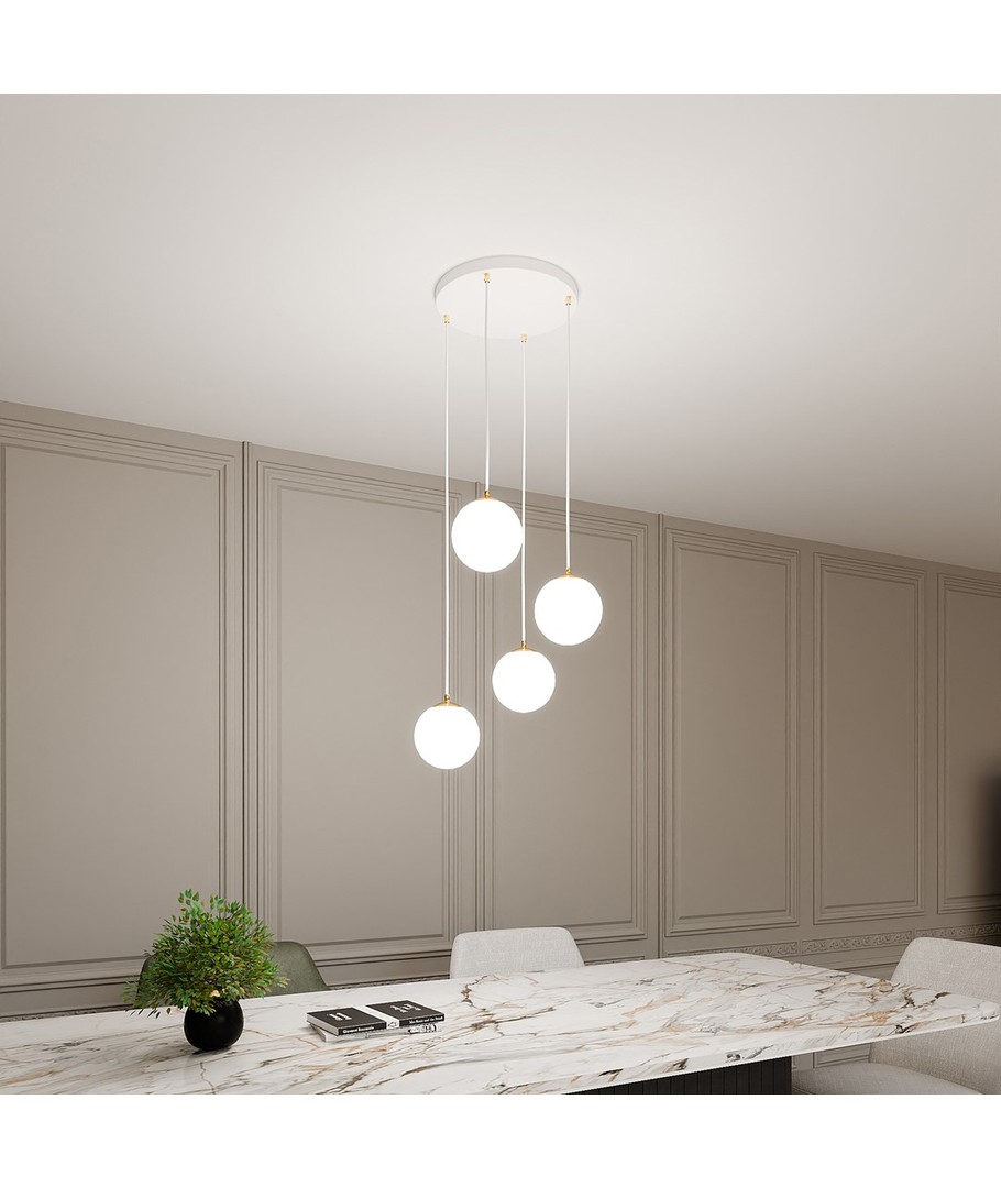 Forvandle ethvert rom med denne vakre Royal 4 Hvit pendellampe, som er designet for å gi et sofistikert og moderne preg til ditt hjem. Lampen er ideell for bruk i både stue og kjøkken, og dens nette størrelse gjør den lett å plassere.