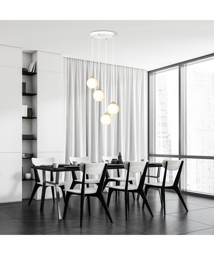 Royal 4 Hvit pendellampe er en del av den elegante ROYAL serie, som tilbyr minimalistisk design som passer perfekt inn i moderne trender. Denne pendellampen har en enkel konstruksjon med en rund takbase, som gjør den allsidig og egnet til forskjellige rom som kjøkken, stue eller spisestue.