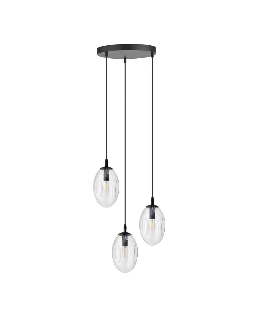 Opplev den elegante Astral 3 Sort Premium Transparent pendellampe, som tilfører ethvert rom en unik estetikk med sin sofistikerte lampeskjerm. Denne pendellampe kombinerer et stilfullt og strømlinjeformet design, som skaper en sjarmerende atmosfære i både moderne og klassiske interiører.