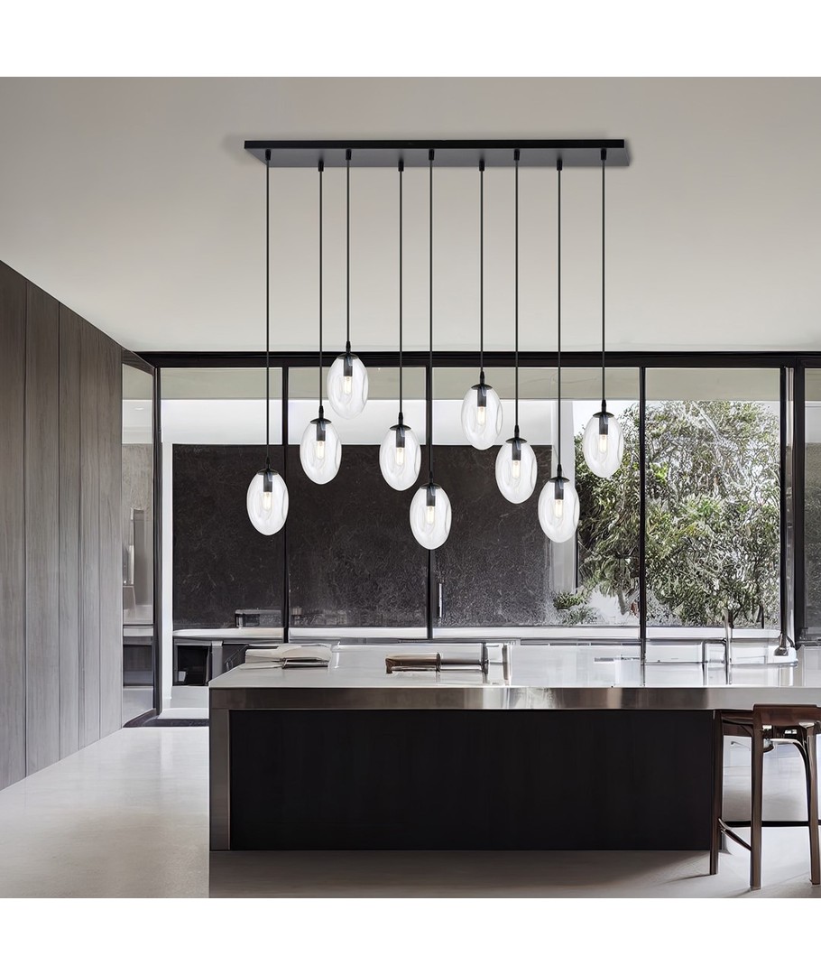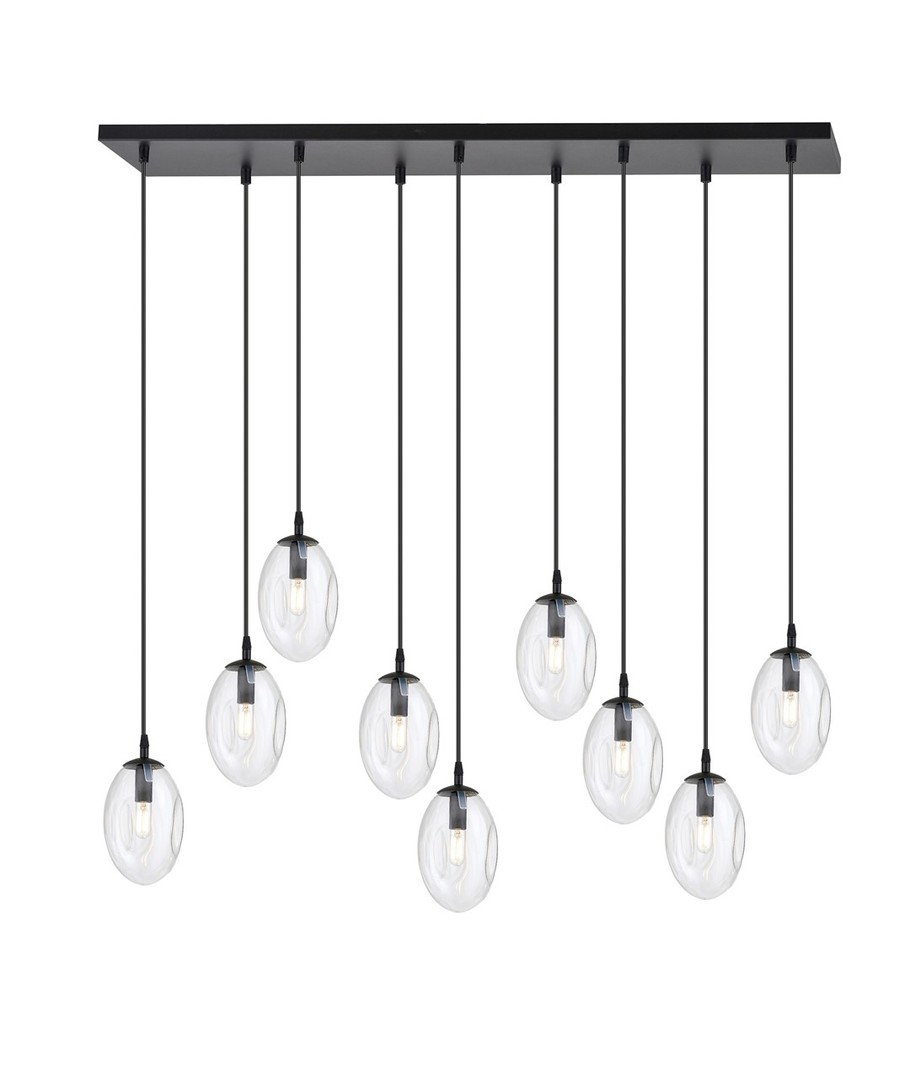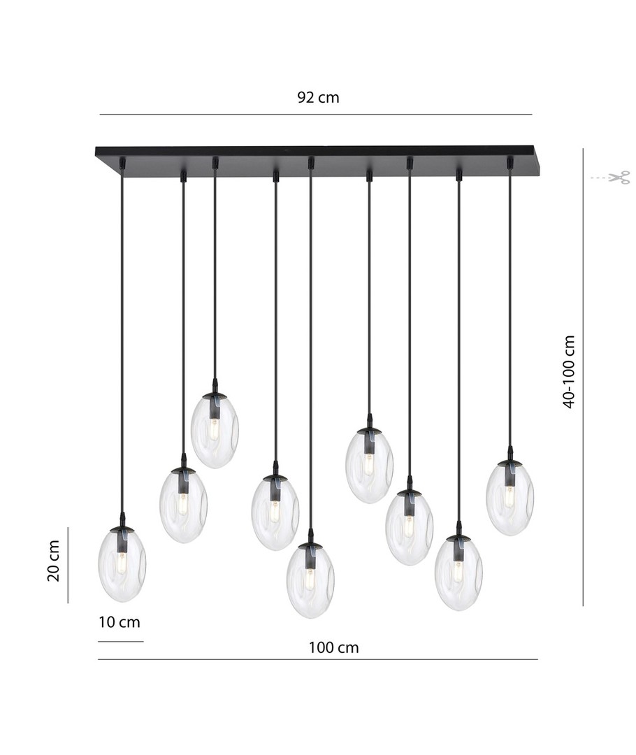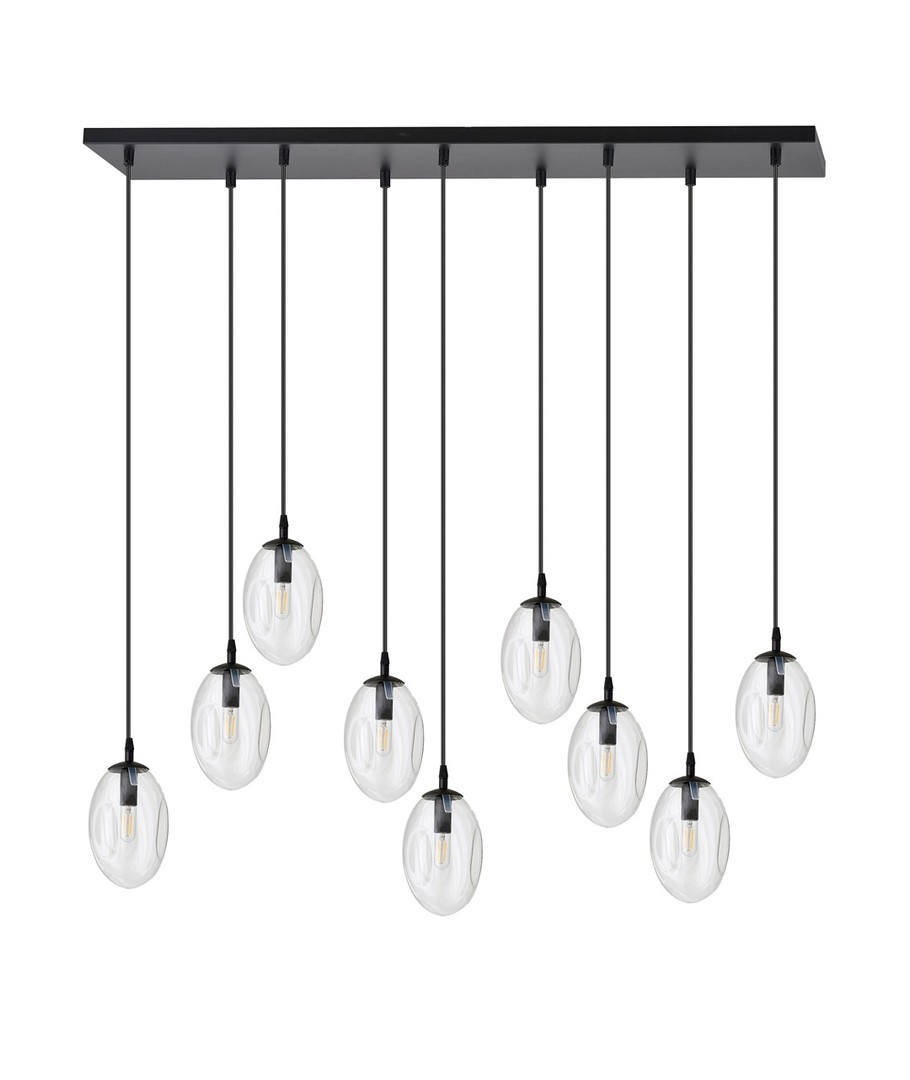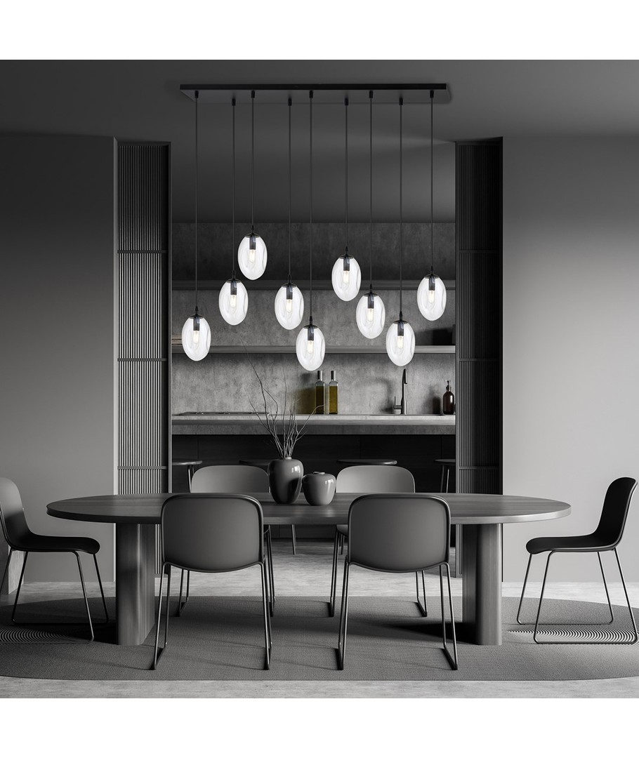 Astral 9 Sort/Transparent pendellampe er en moderne belysningsløsning, som bringer eleganse og unik personlighet til ethvert rom. Med sine ni stilige lampeskjermer i transparent glass kombinert med en sort finish, passer denne lampen perfekt inn i både moderne, minimalistiske og klassiske interiørstiler.
