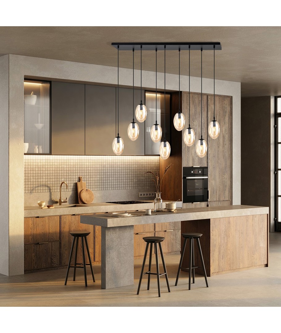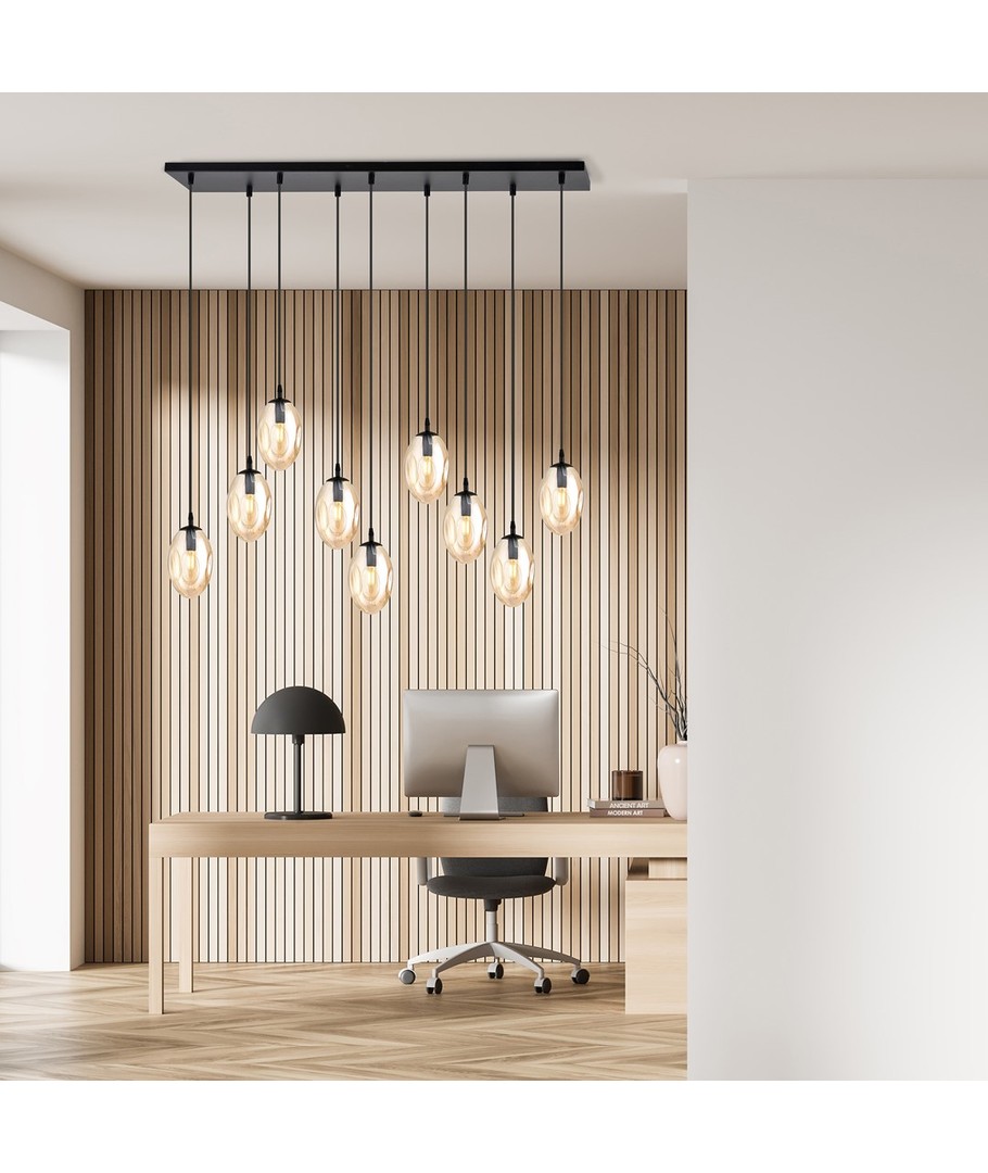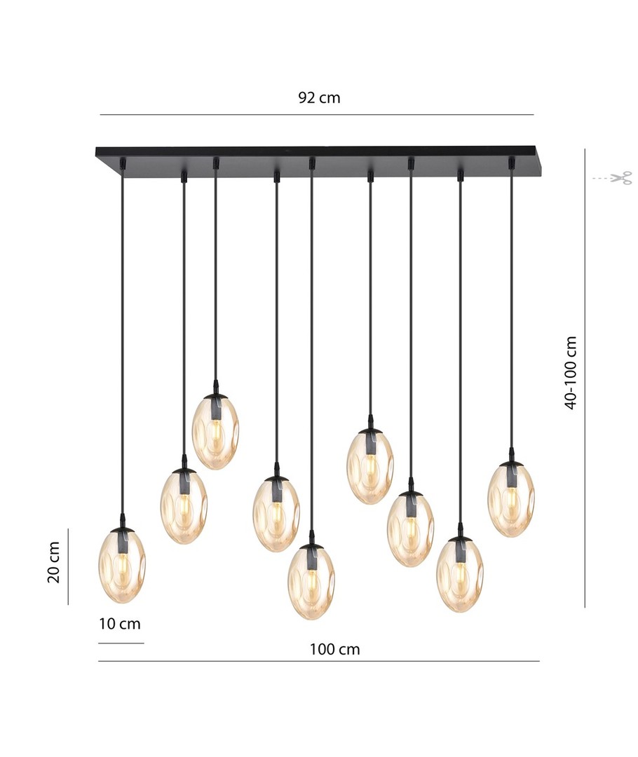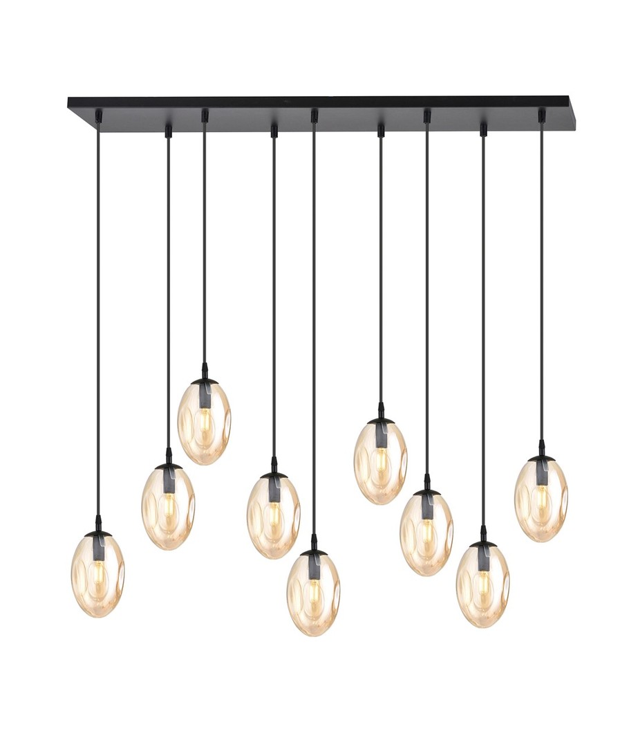 Med ni sokler sikrer den en generøs belysning, og den vakre kombinasjonen av svart og ravgul farger sørger for et tidløst utseende.