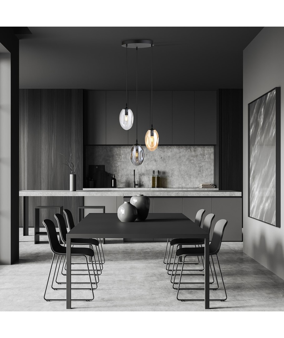 Astral 3 Sort Premium Mix pendellampe er designet for å bringe eleganse og karakter til rommet ditt. Med sine unike lampeskjermer tilfører denne lampen en sofistikert sjarm som passer perfekt til både moderne og klassiske interiører. De tre justerbare skjermene i grafitt, transparent og rav gjør det mulig å tilpasse lysnivået, slik at det passer til enhver stemning eller stil. Den pulverlakkerte stålkonstruksjonen sikrer både holdbarhet og et elegant utseende, mens den slanke formen gir en moderne kant.
