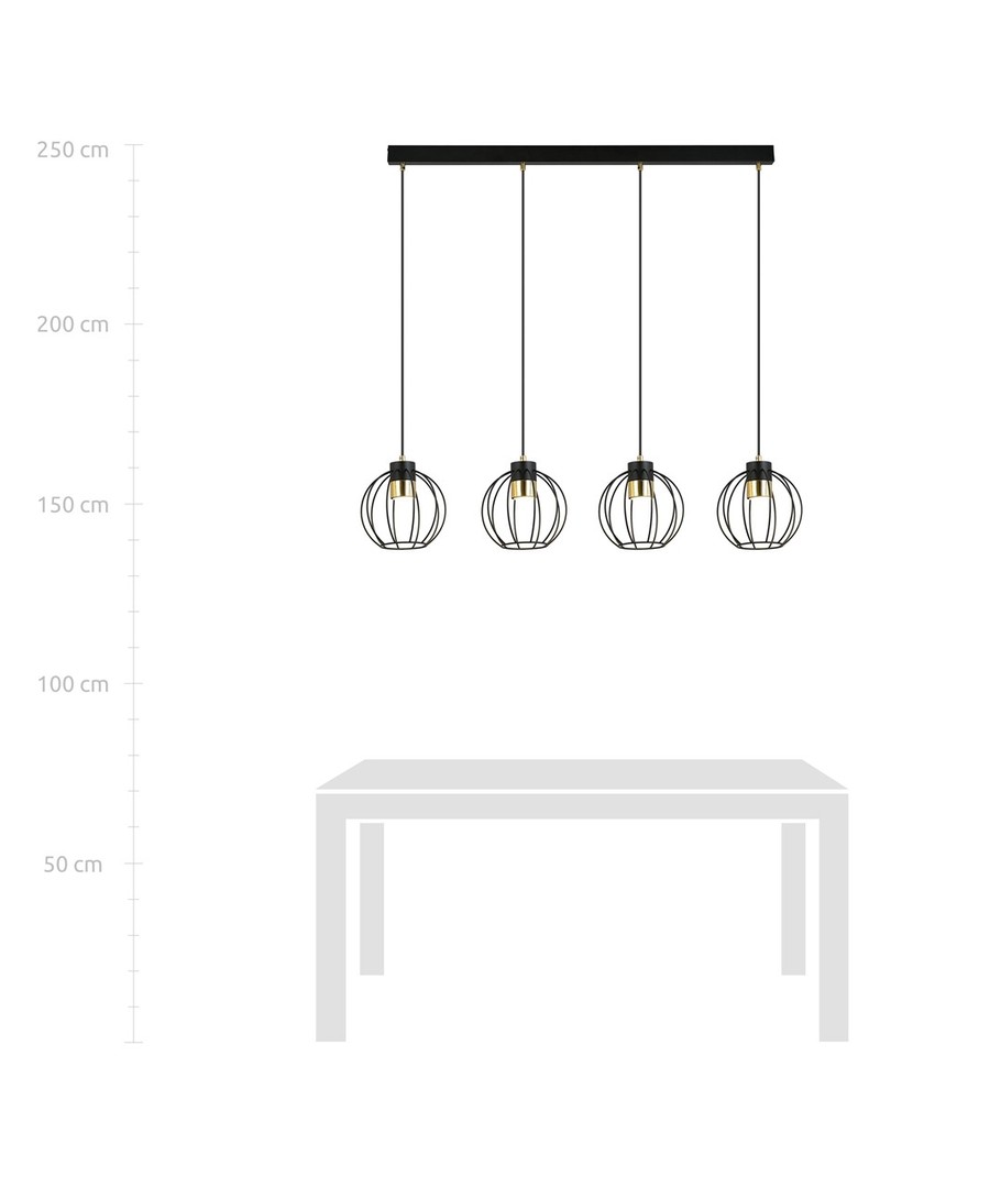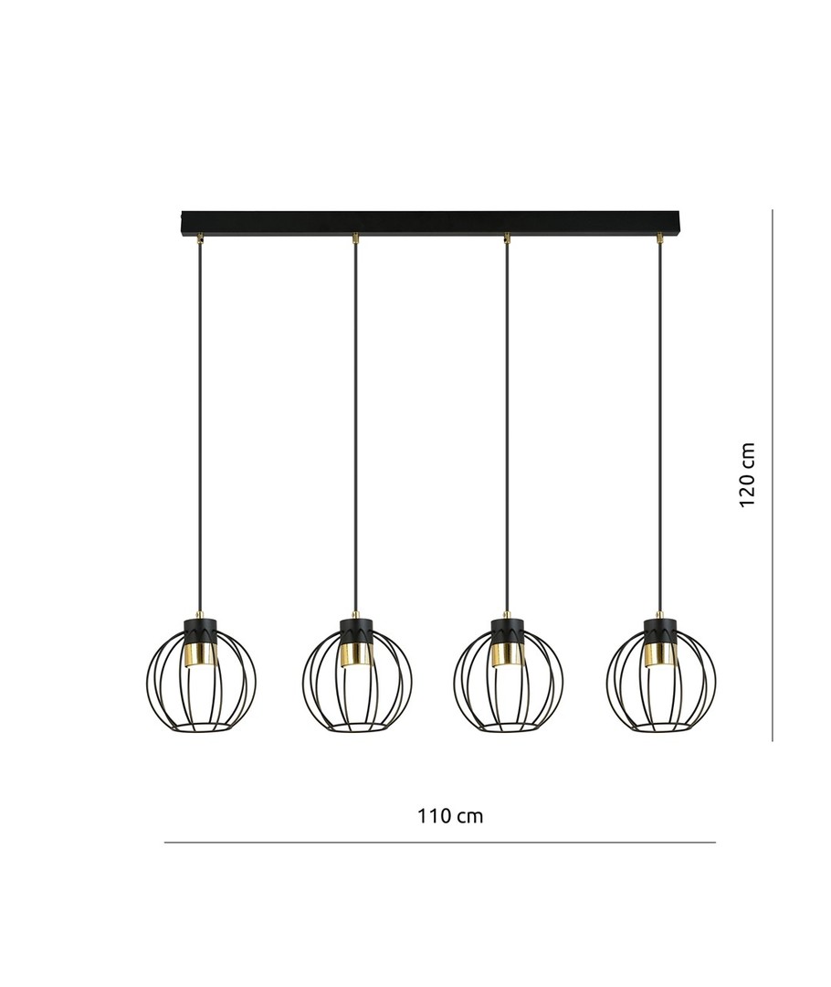 Ajax 4 Sort/Gull pendellampe er den perfekte tillegg til stuen eller loftet, hvis du ønsker å skape en moderne og unik atmosfære. Designet med justerbare ledninger, kan denne lampen tilpasses individuelle behov, hvilket sikrer jevn belysning av store områder. Lampens store metallkuler passer elegant inn i de fleste hjem med sine dekorative gulldetaljer, som tilfører et ekstra streif av raffinement og letthet. Uansett om du ønsker å innrede et stilfullt eller koselig miljø, er Ajax-serien et fremragende valg.