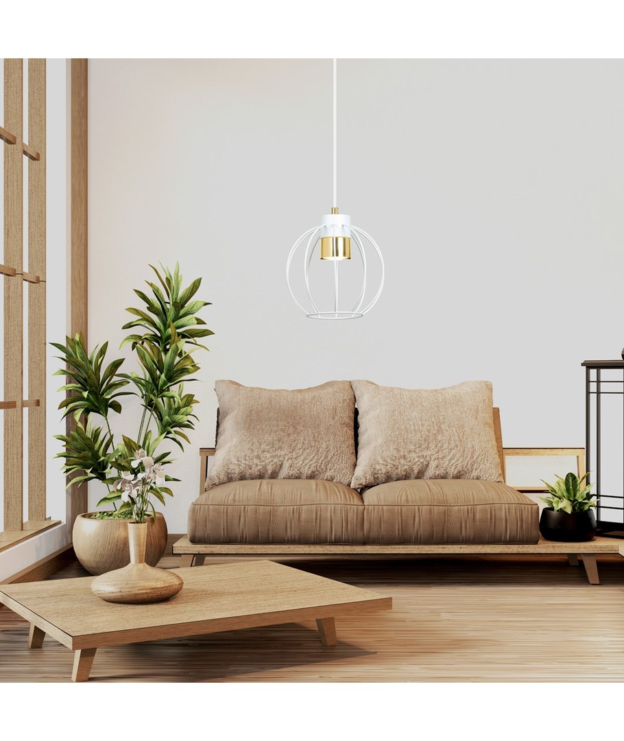 Skap en stilfull atmosfære i rommet med denne moderne pendellampen i hvit med gull detaljer. Denne lampen er et perfekt valg for de som ønsker å kombinere funksjonalitet med estetisk appell.