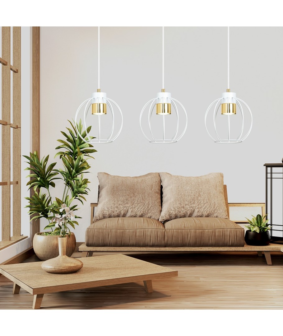 Oppgrader ditt hjem med denne stilrene og moderne pendellampen. Med sin sofistikerte hvit og gull-finish, vil lampen tilføre et snev av eleganse til enhver rom.