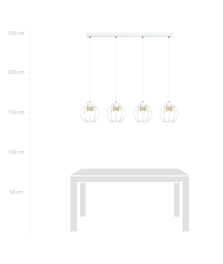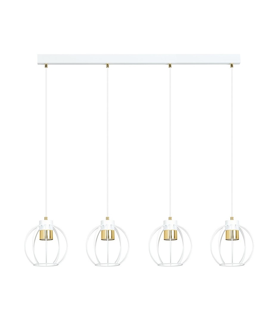 Ajax 4 Hvit/Gull pendellampe er den perfekte tillegg til moderne stuer og loftsrom. Denne elegante lampen skaper en unik atmosfære med sitt iøynefallende design. Den har justerbare ledninger, som gjør det mulig å tilpasse lampens høyde, slik at du kan sikre en jevn belysning i større områder.