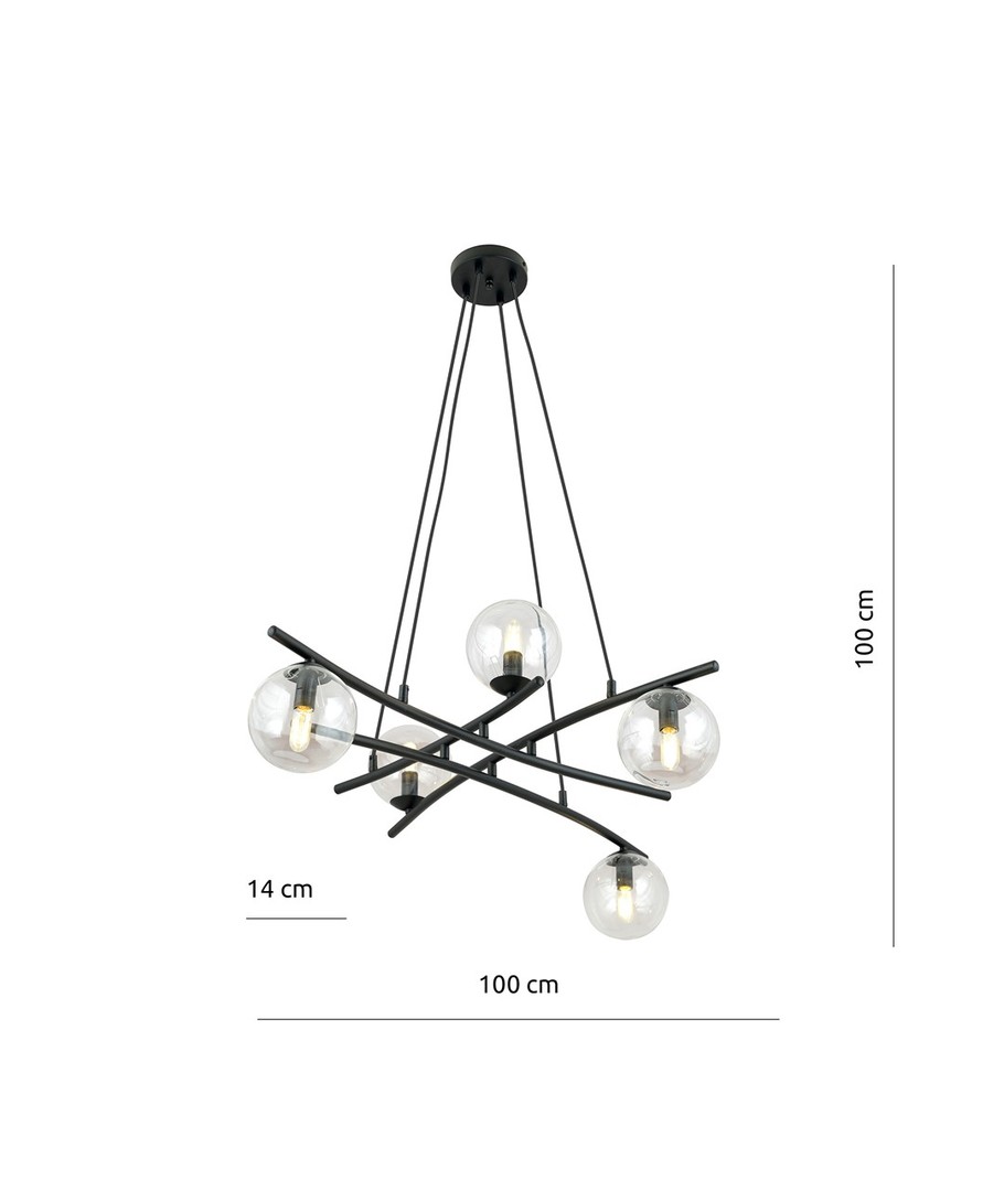 Essa 5 Transparent pendellampen er en del av den unike Essa-serien, som skiller seg ut med sitt eksepsjonelle og originale design. Lampens iøynefallende konstruksjon gjør den til et imponerende element i ethvert rom. Essa-lampen passer perfekt inn i stuen, hvor den tilfører en særegen karakter og stil. Med sine transparente glasskjermer fremstår lampen lett og grasiøs. Den er ikke bare vakker, men også ytterst funksjonell, da den effektivt lyser opp selv store rom og tilfører en unik sjarm.