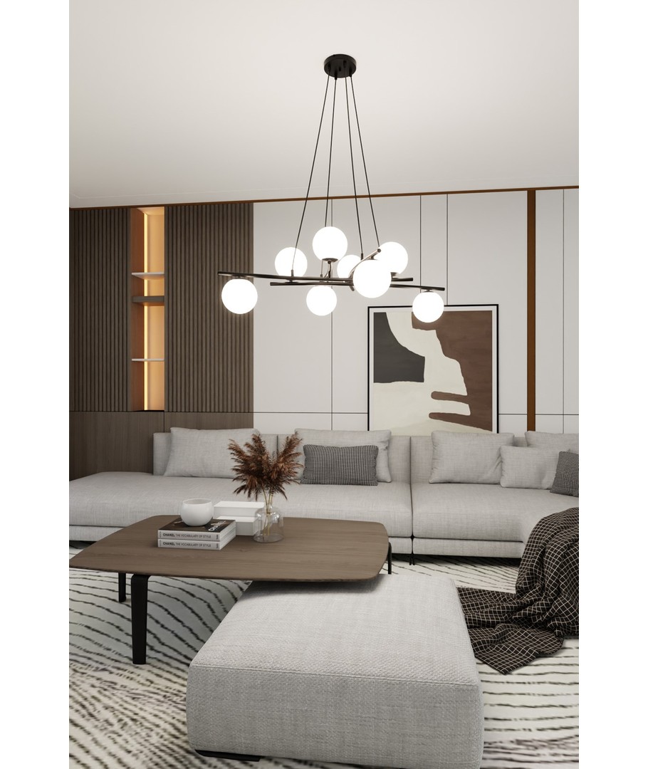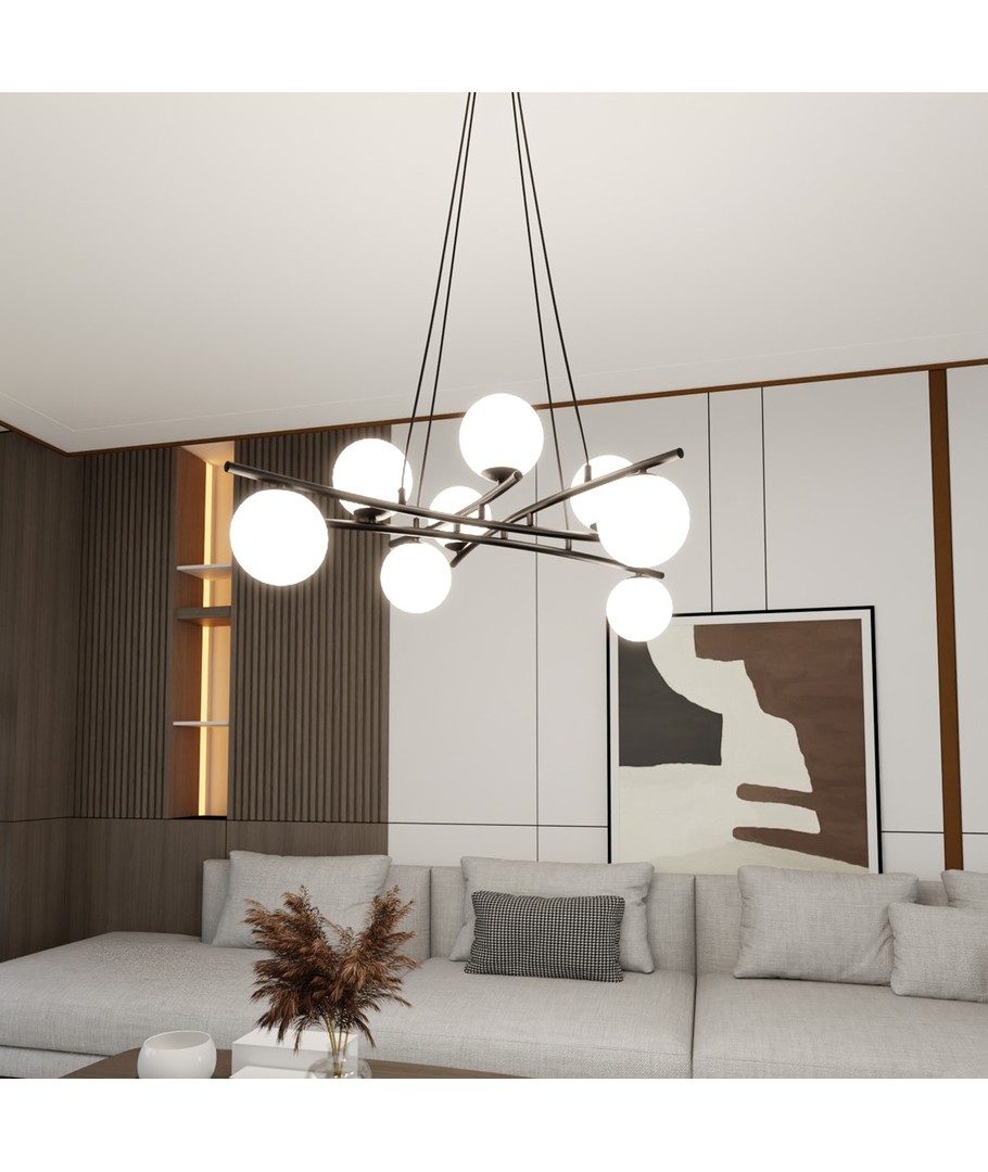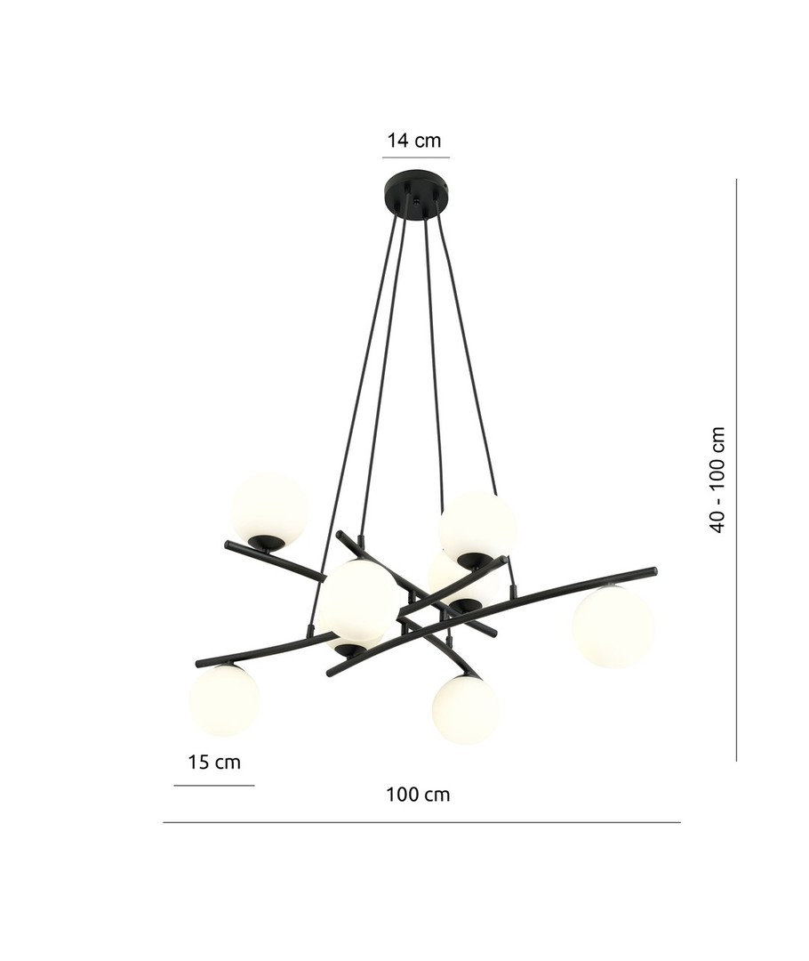 Med dimensjoner på 1000 x 1000 x 1000 x Ø150 mm, er Essa 8 ideell for å skape et sentralt lyspunkt over spisebordet, i stuen eller i gangen. Den har en fleksibel og elegant størrelse som lett kan integreres i ulike interiører.