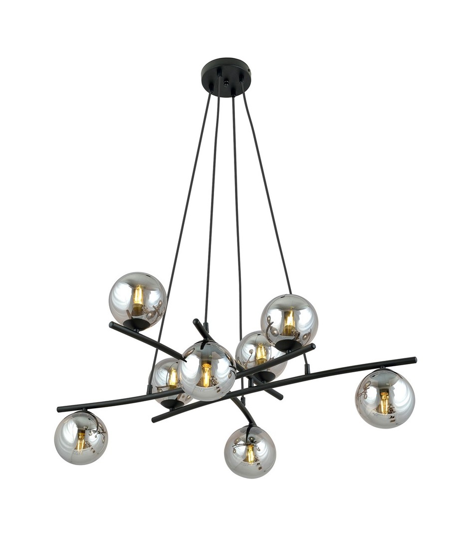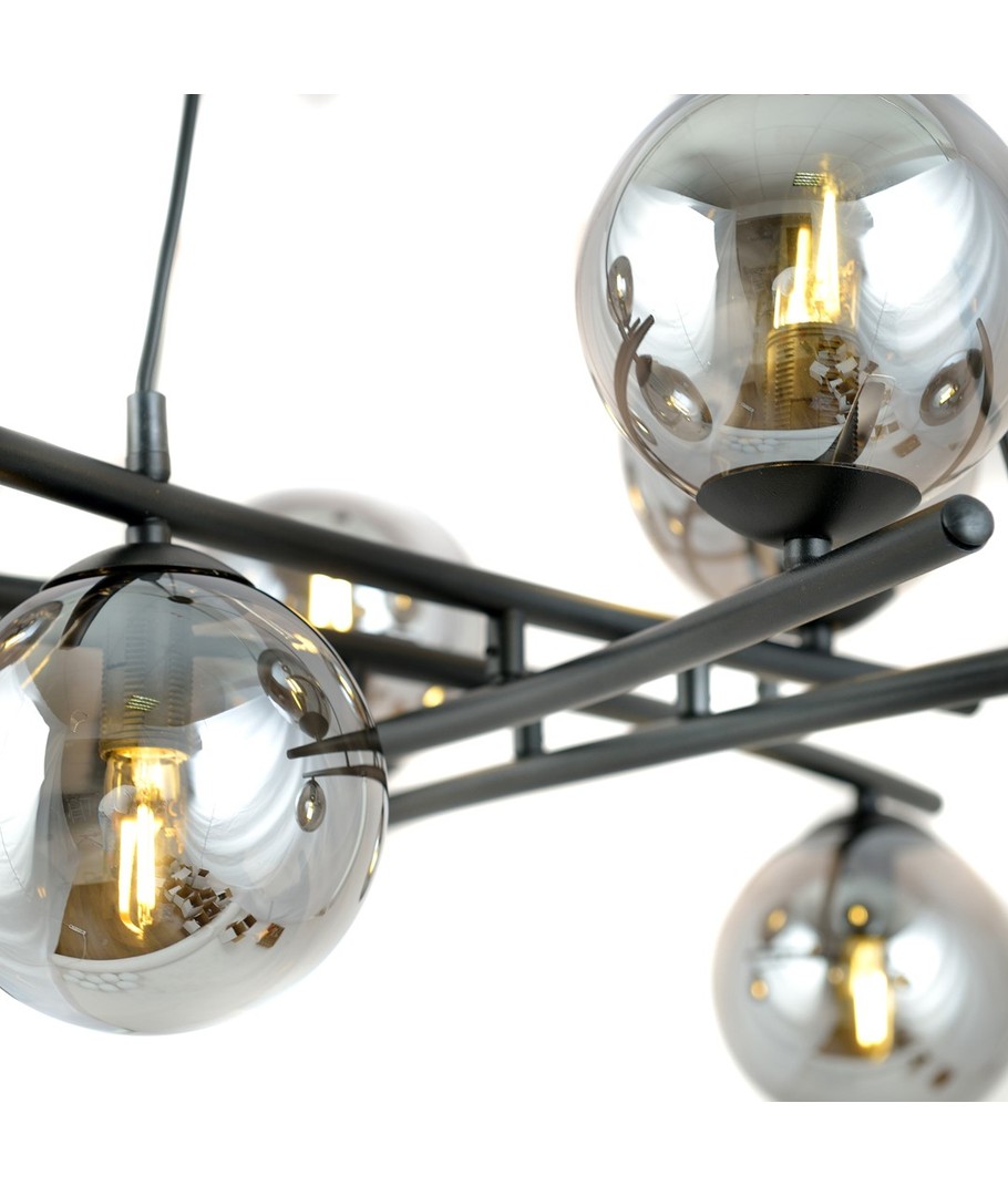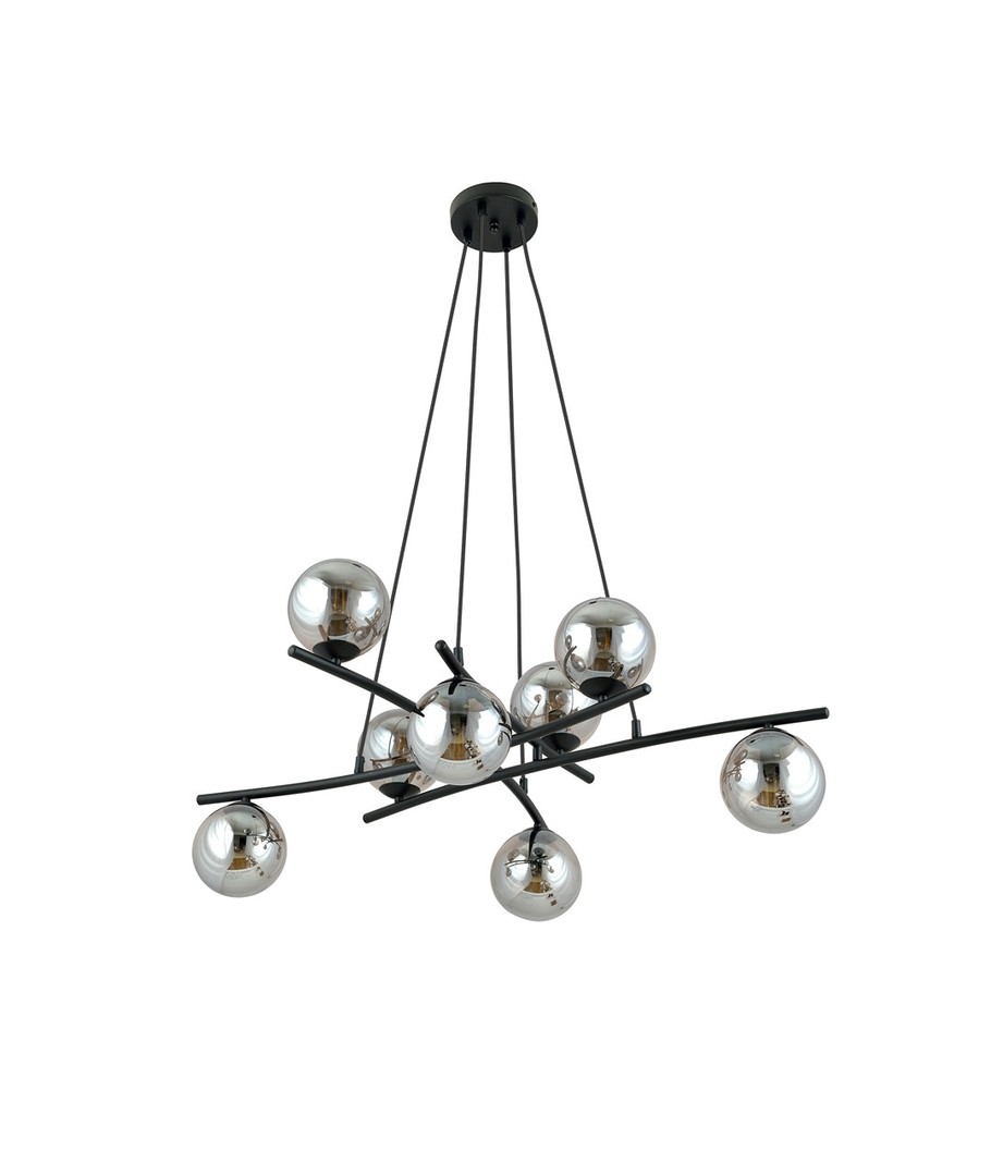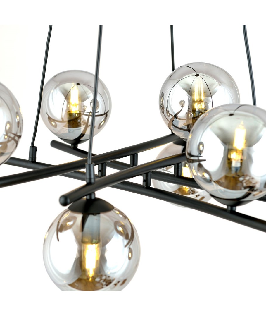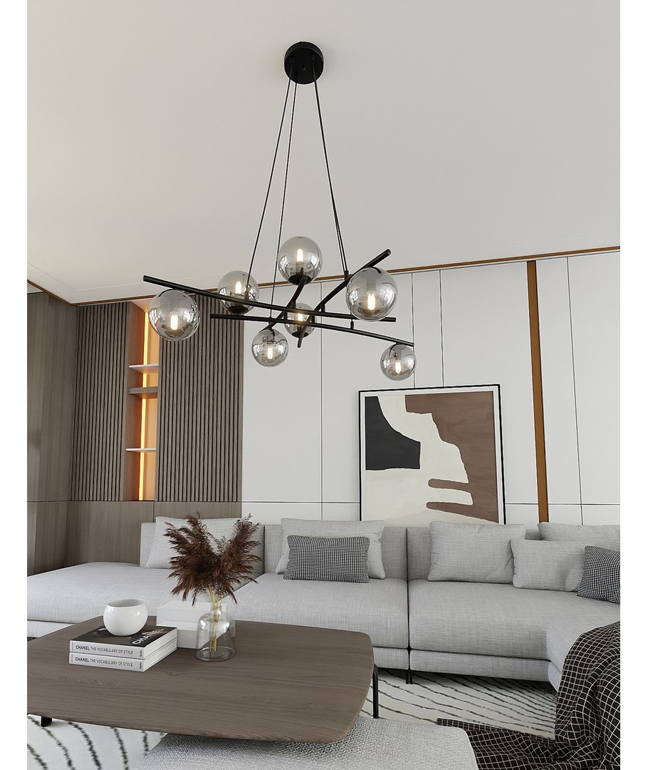 Essa 8 Grafitt pendellampe bringer eleganse og moderne design inn i ditt hjem. Med sin unike og iøynefallende form tilfører den en særpreget stil til stuen. Denne lampen er ikke bare en funksjonell lyskilde, som lyser opp store rom, men også en estetisk gjenstand som tilfører et snev av unik sjarm. De elegante glasskjermene får lampen til å fremstå lett og grasiøs, noe som gjør Essa til et ideelt valg for dem som ønsker stil og funksjonalitet kombinert.