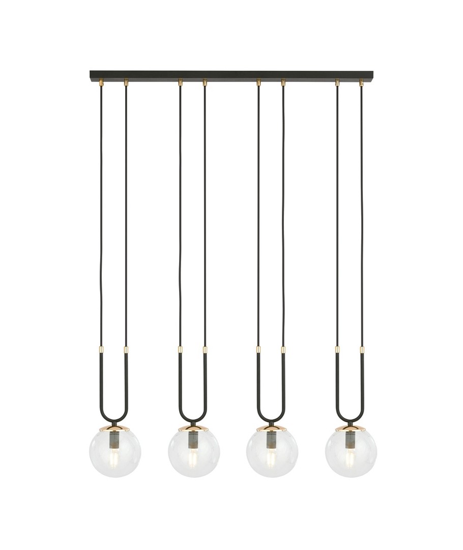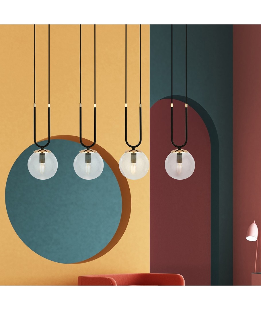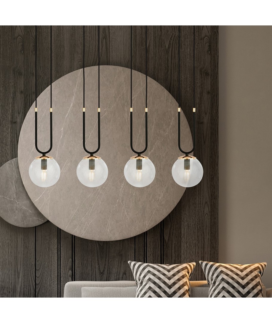 Glam 4 Sort/Transparent pendellampe er det perfekte valg for de som verdsetter eleganse og stil i hjemmet. Denne moderne pendellampe fra GLAM-serien kombinerer glamorøst design med funksjonalitet, som skaper en unik atmosfære i ditt interiør. De delikate glasskjermene gir lampen en letthet og eleganse, mens de gylne dekorasjonene tilfører et snev av luksus og opplysning. Produktet er skapt for de som ønsker å berike hjemmet sitt med vakre og elegante lysinstallasjoner.