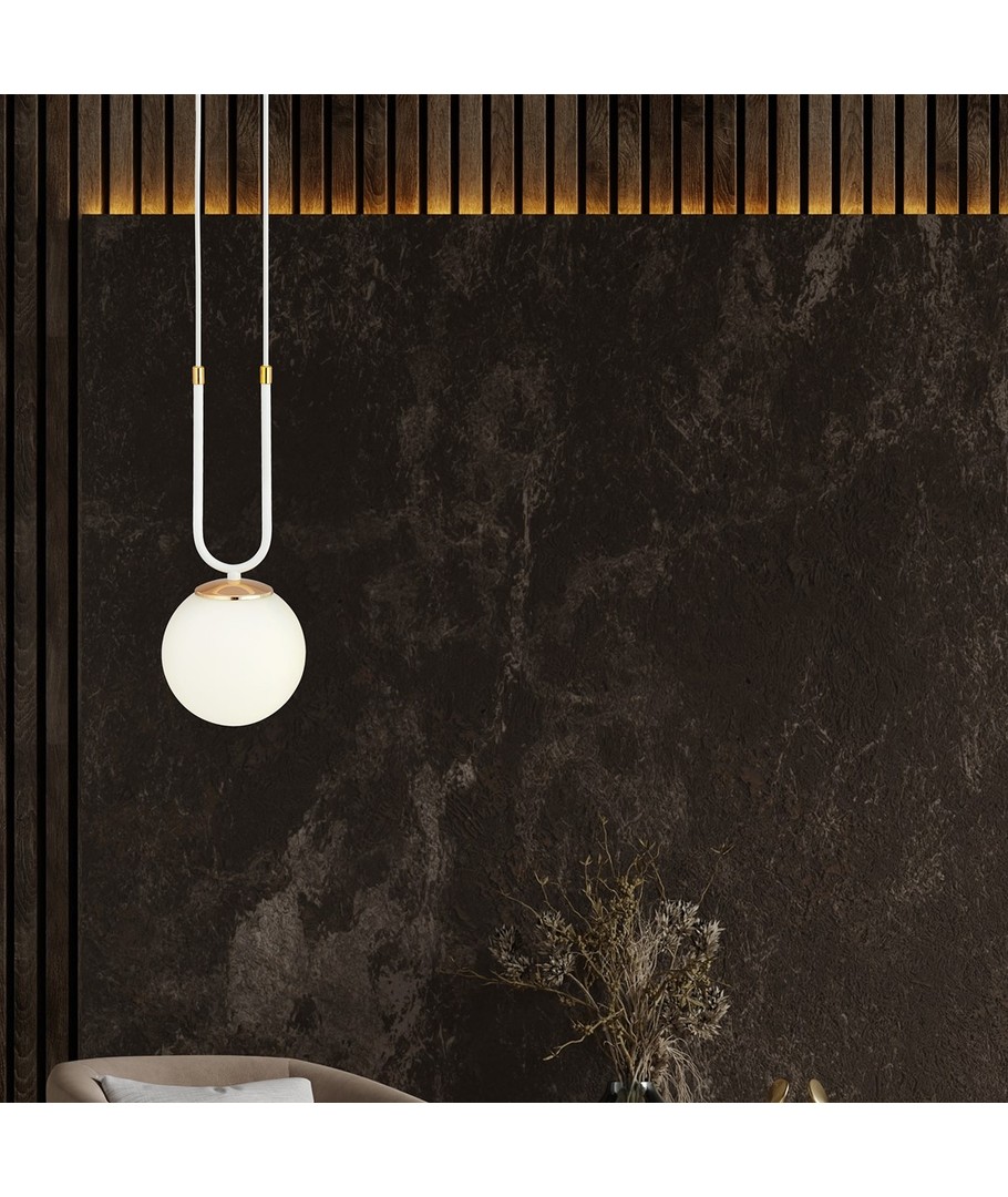 Glam 1 Hvit/Opal pendellampe er en del av en moderne kolleksjon som bringer glamour inn i ditt hjem. Dens elegante design skaper en unik atmosfære som oser av stil og eleganse. Med sine delikate glasskjerm og gyldne dekorative elementer er denne lampen perfekt for de som elsker luksus og skjønnhet. Glam-serien kombinerer finesse med funksjonalitet, noe som gjør den til et ideelt valg for enhver innredning som ønsker å imponere. Denne pendellampen vil uten tvil transformere rommet med sin stilfulle tilstedeværelse.