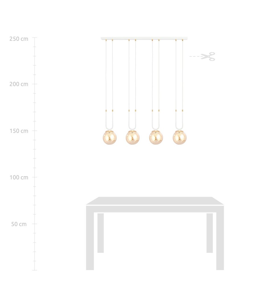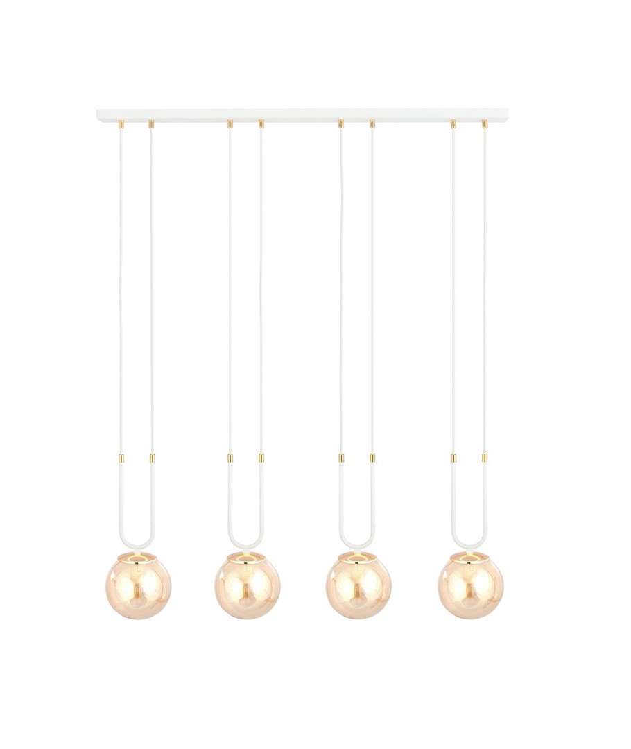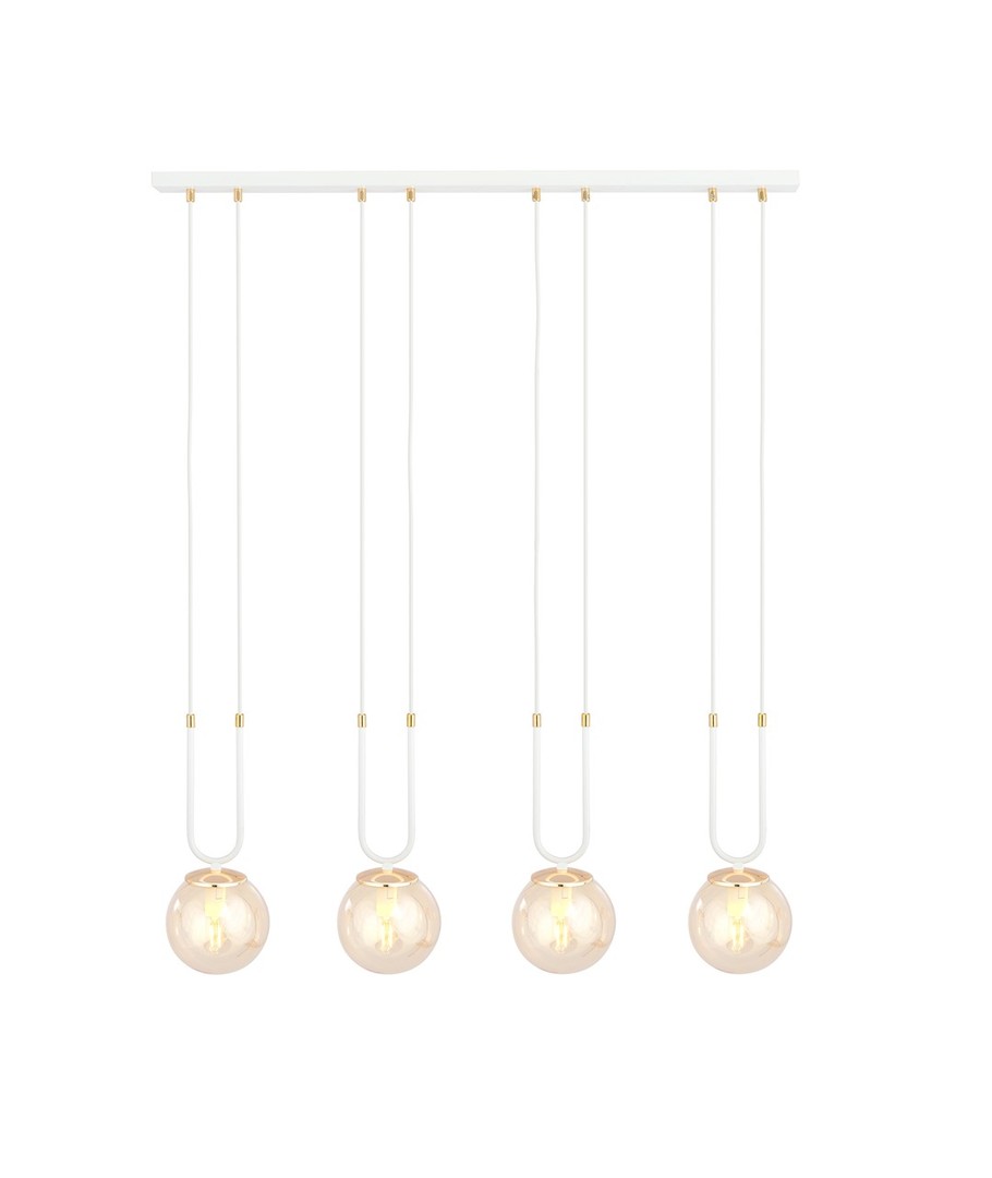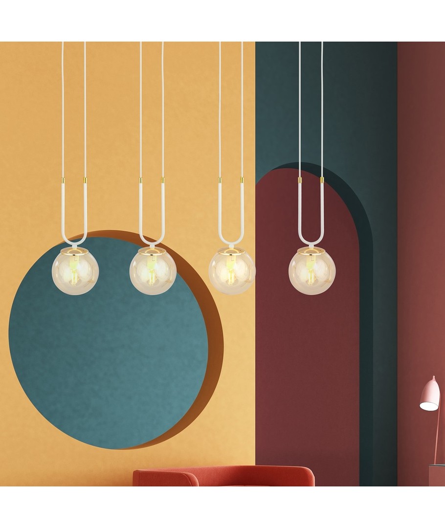 Glam 4 pendellampe kombinerer stil og funksjonalitet med sin moderne design i hvit og rav. Perfekt for å sette det lille ekstra preg på interiøret ditt. Denne elegante lampen er designet for å gi en behagelig belysning, ideell for stuer, spisestuer eller soverom.
