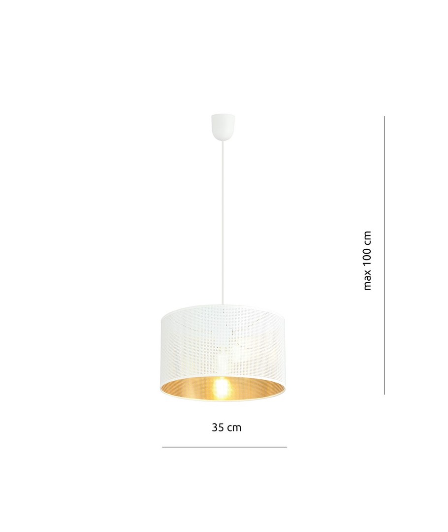 Bring et snev av luksus og moderne design inn i rommet ditt med denne elegante pendellampen i hvit og gull. Med sine rene linjer og blendende finish passer den perfekt i både stue, kjøkken, eller entré.