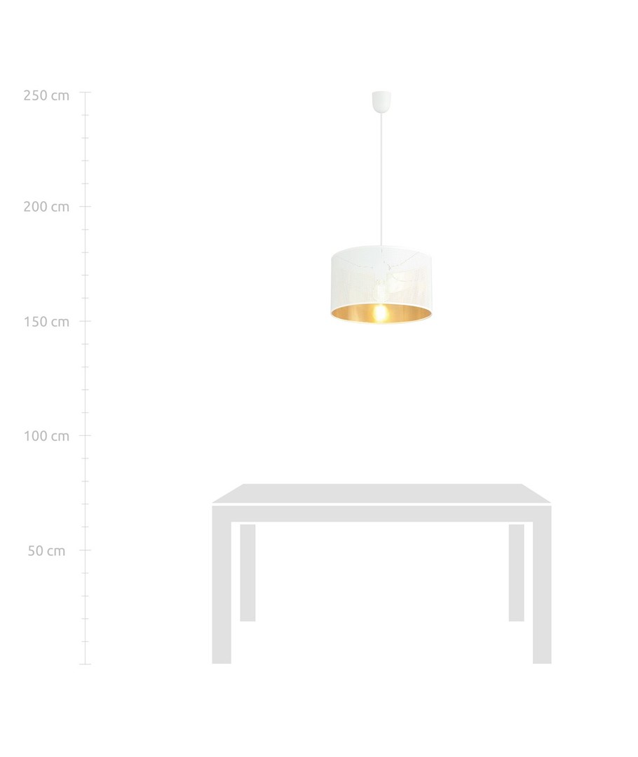Enten du ønsker å oppdatere belysningen i salongen eller legge til en stilfull detalj i kjøkkenet, er denne pendellampen i hvit og gull et utmerket valg. Den kombinerer estetikk og funksjon, og bergtar alle som beundrer dens enkle eleganse.