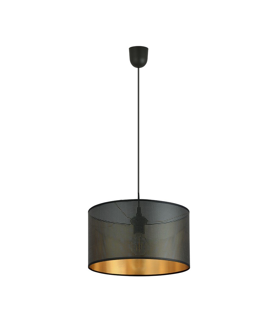 Aston 1 Sort/Gull pendellampe er en elegant og moderne belysningsløsning, som enkelt tilpasser seg både tradisjonelle og moderne interiører. Denne lampen er nøye designet og laget av materialer av høy kvalitet for å sikre både holdbarhet og stil. Med sitt enkle og minimalistiske design er Aston lampen et allsidig tillegg til ethvert rom. Lampens sort-gull fargekombinasjon tilfører et eksklusivt preg, som skaper en koselig atmosfære i ditt hjem eller på kontoret. Uten en medfølgende lyskilde gir lampen mulighet til å legge til din egen unike pære for å skape den perfekte stemningen.