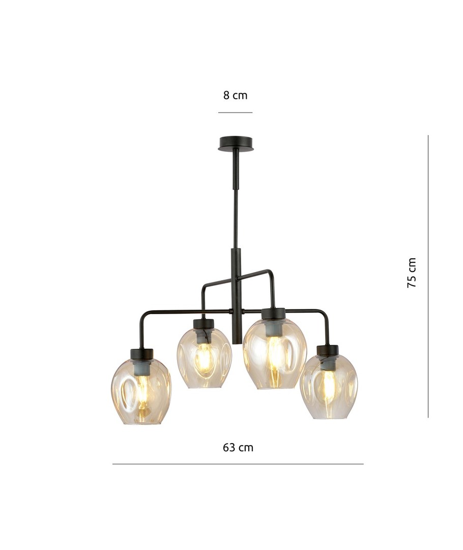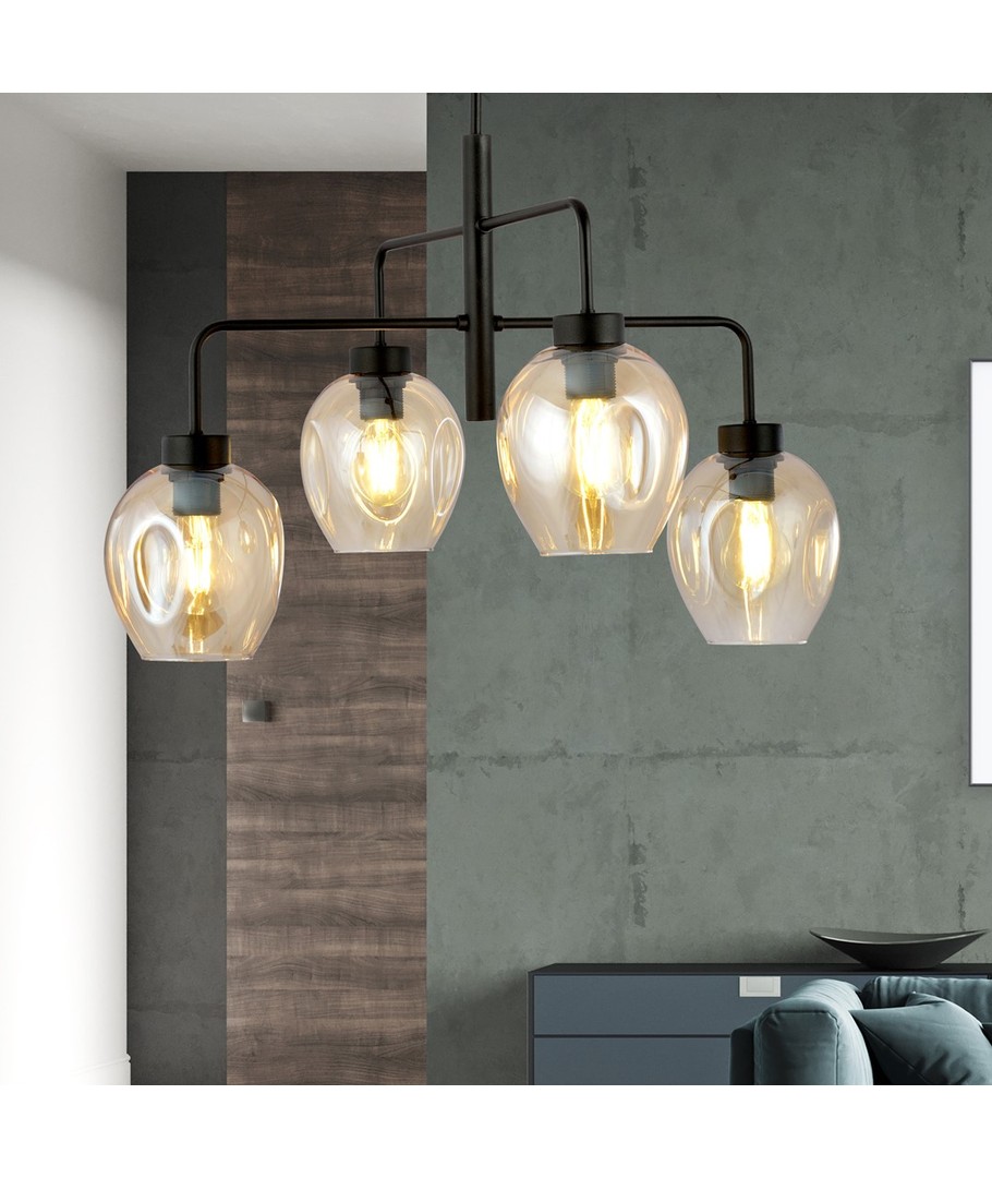 Skap en behagelig atmosfære med denne elegante pendellampen i sort og rav, perfekt for ulike rom i hjemmet ditt. Lampen gir et tidløst og sofistikert uttrykk som passer like godt over spisebordet, i stuen, eller soverommet.