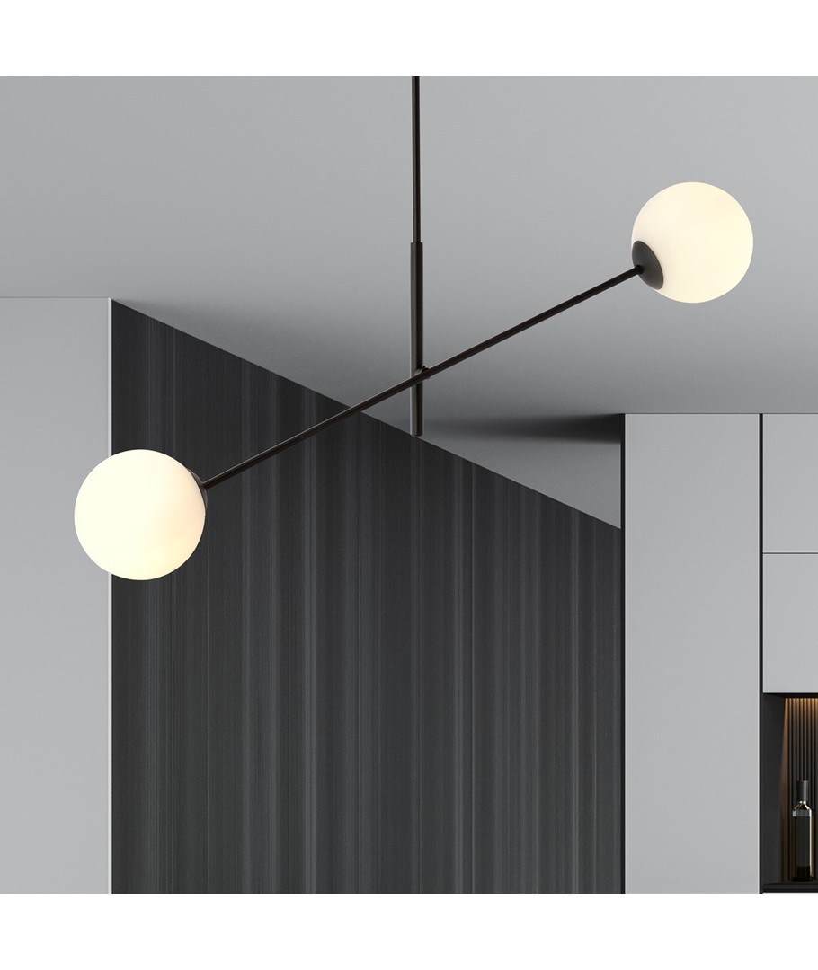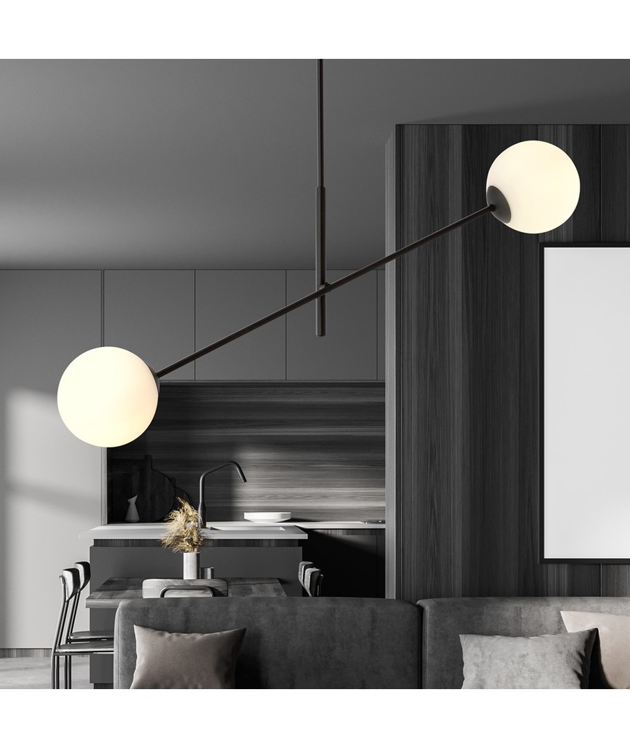 Linear 2 Sort/Opal pendellampe kombinerer tidløst design med moderne funksjonalitet og er ideell for både moderne og tradisjonelle interiør. Med dens elegante glasslampeskjermer tilfører lampen et snev av eleganse og letthet i ethvert rom. Den minimalistiske konstruksjonen sikrer at lampen effektivt lyser opp større områder, samtidig som den stilfullt integreres i forskjellige interiørstiler. Heng den over et spisebord eller en kjøkkenøy for å skape en unik og innbydende atmosfære.