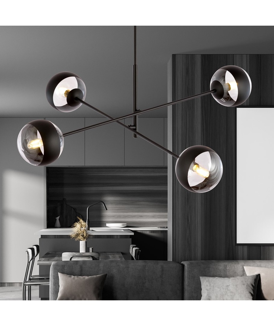 Linear 4 Sort/Stripe pendellampe er en del av den populære LINEAR-serien, som kombinerer moderne design med funksjonell eleganse. Perfekt for både moderne og tradisjonelle interiører, skaper denne lampen en unik atmosfære over bordet eller kjøkkenøya. De delikate glasskuplene tilfører eleganse og letthet til ditt hjem. Det minimalistiske designet lyser effektivt opp store områder og passer perfekt inn i forskjellige interiører. Denne lampen er en ideell belysningsløsning for dem som verdsetter stil og funksjonalitet i ett produkt.
