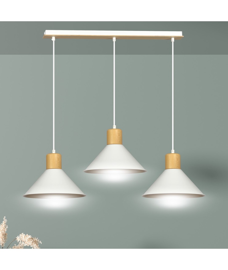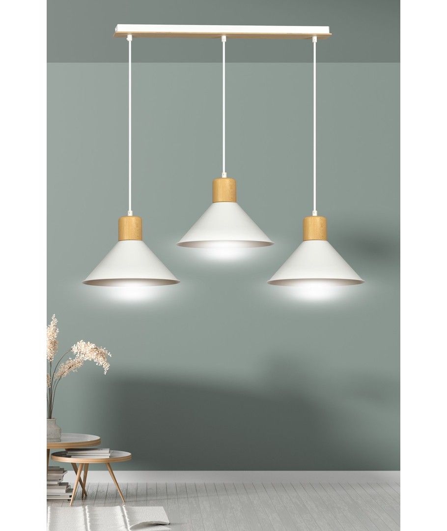 Opplyst hjem betyr mer enn bare lys – det handler om å definere rommets atmosfære. Den hvite pendellampen med tre lys Rowen 3 er designet for å gi ethvert interiør et sofistikert preg med sin enkle eleganse.