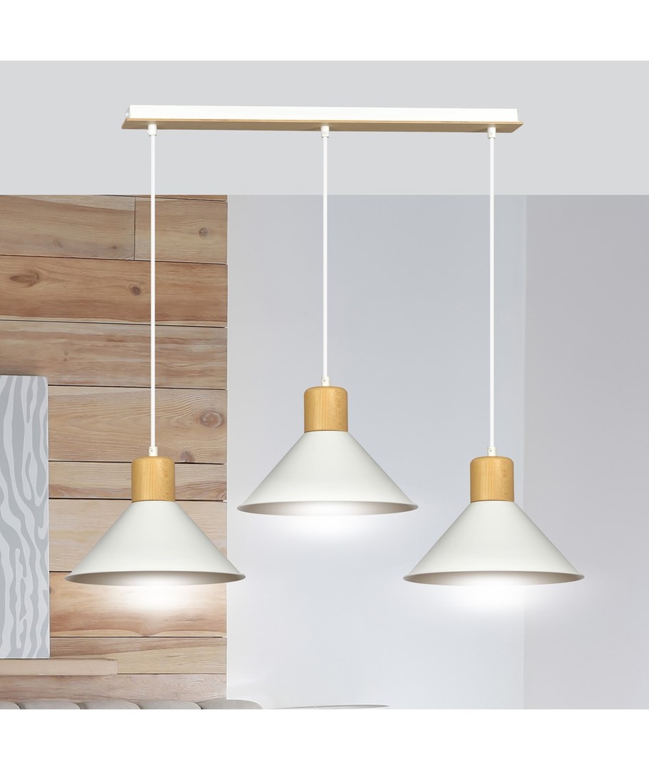 Rowen 3 hvit pendellampe i et minimalistisk design kombinerer skandinavisk stil med moderne funksjonalitet. Med sine åpne metallskjermer sikrer denne lampen effektiv belysning selv i større rom. De elegante tredetaljene tilfører et visuelt tiltalende element som passer perfekt inn i enhver interiørstil. Rowen-lampene er skapt for å være blikkfang, samtidig som de beholder en stilren enkelhet. Denne lampen er ideell for dem som verdsetter både design og funksjonalitet. Merk at lyskilde ikke medfølger, noe som gir mulighet for valg av personlig lyseffekt.