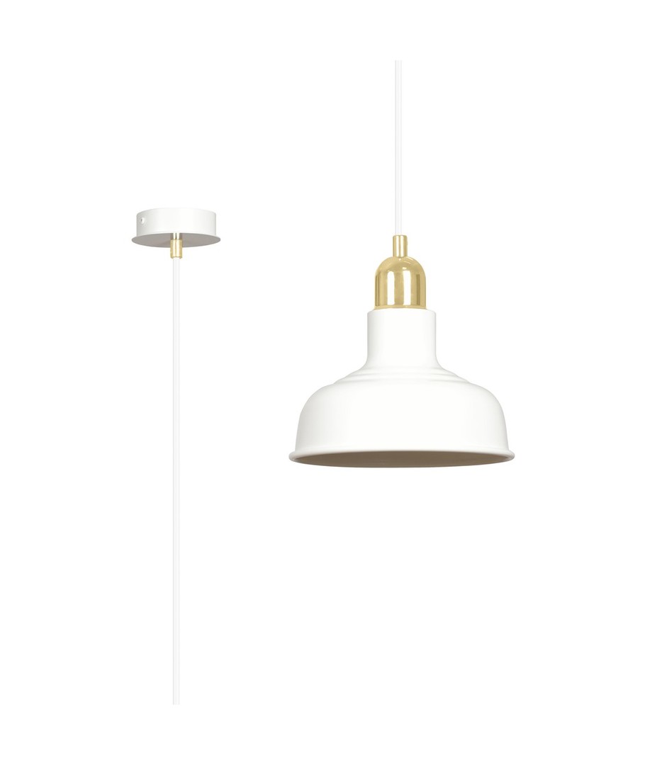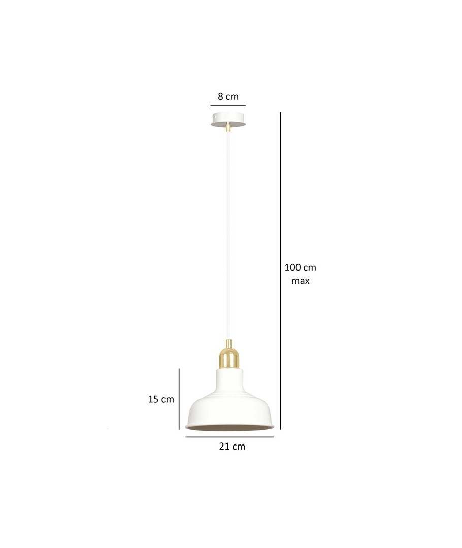 Ibor 1 Hvit pendellampe er en del av en moderne serie av taklamper med et enkelt og stilfullt design. Den passer perfekt inn i nesten enhver innredning med sitt loft-inspirerte utseende. Den åpne metalskjermen sikrer at lampen effektivt kan belyse selv store rom, noe som gjør den ideell til både hjemmet og arbeidsplassen.