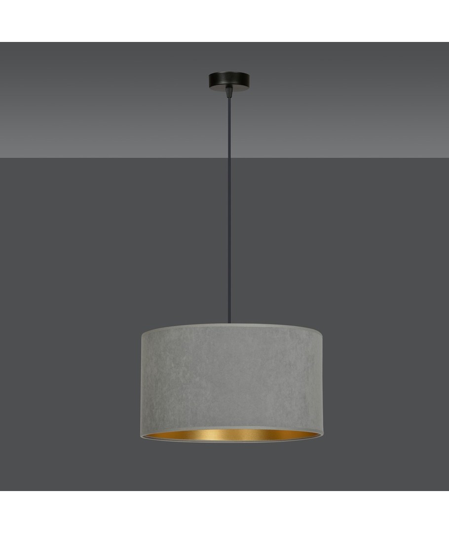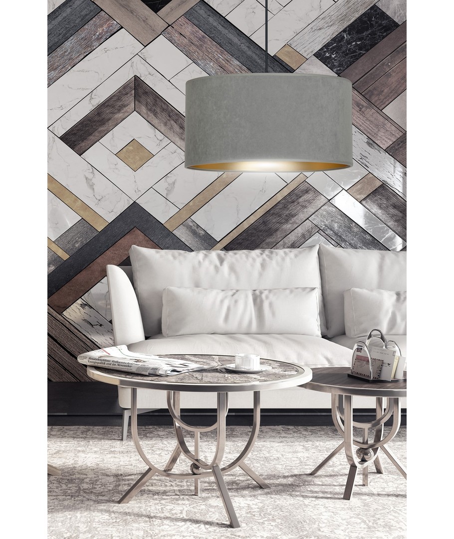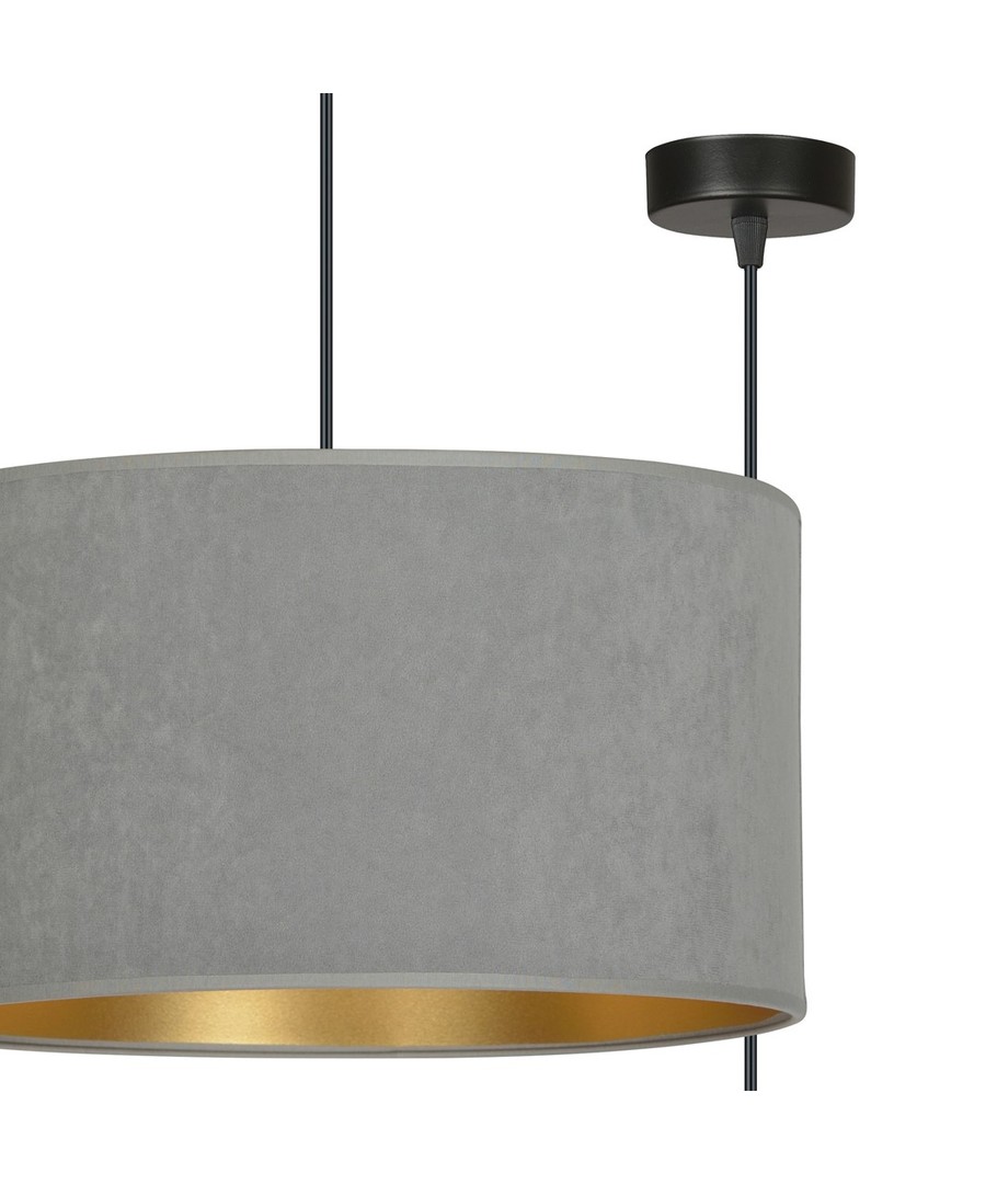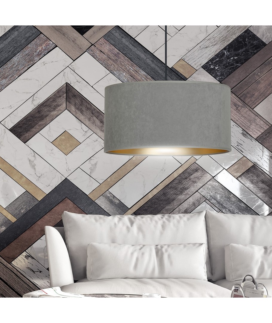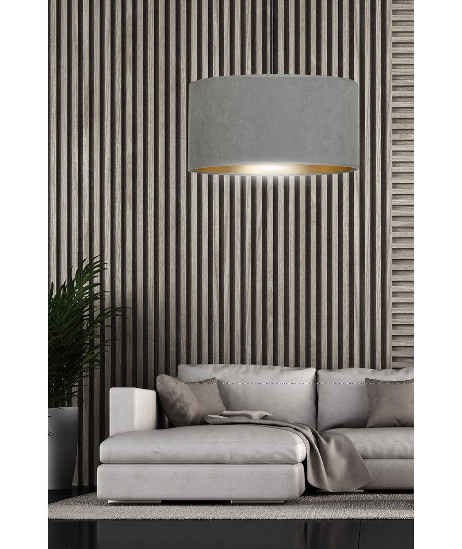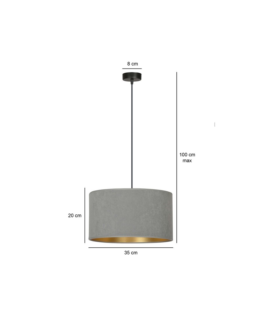 Den fløyelsmyke skjermen med en skinnende gylden innside sprer et behagelig lys, slik at atmosfæren i rommet blir innbydende. Lampens enkelhet i designet og de elegante fargepaletten gjør den ideell for forskjellige rom.