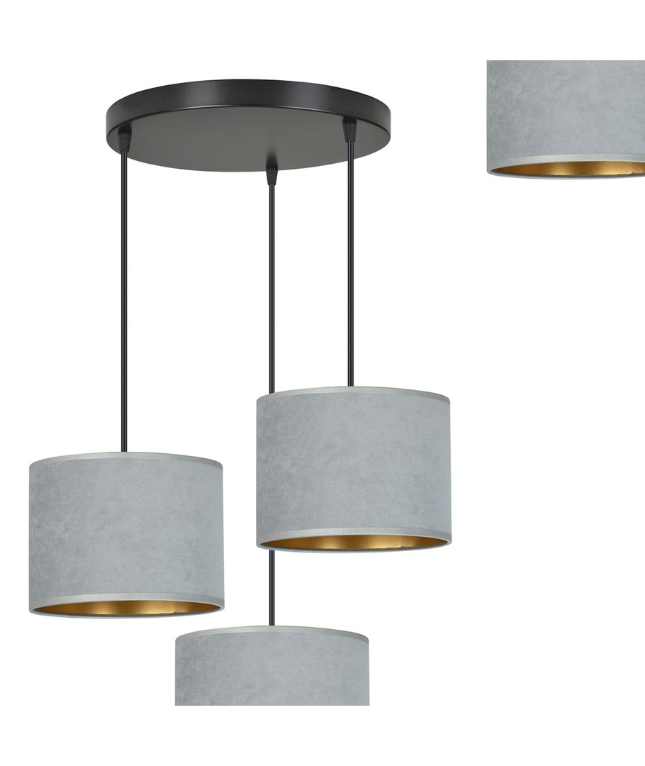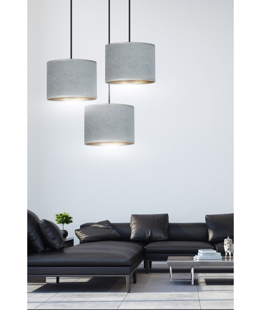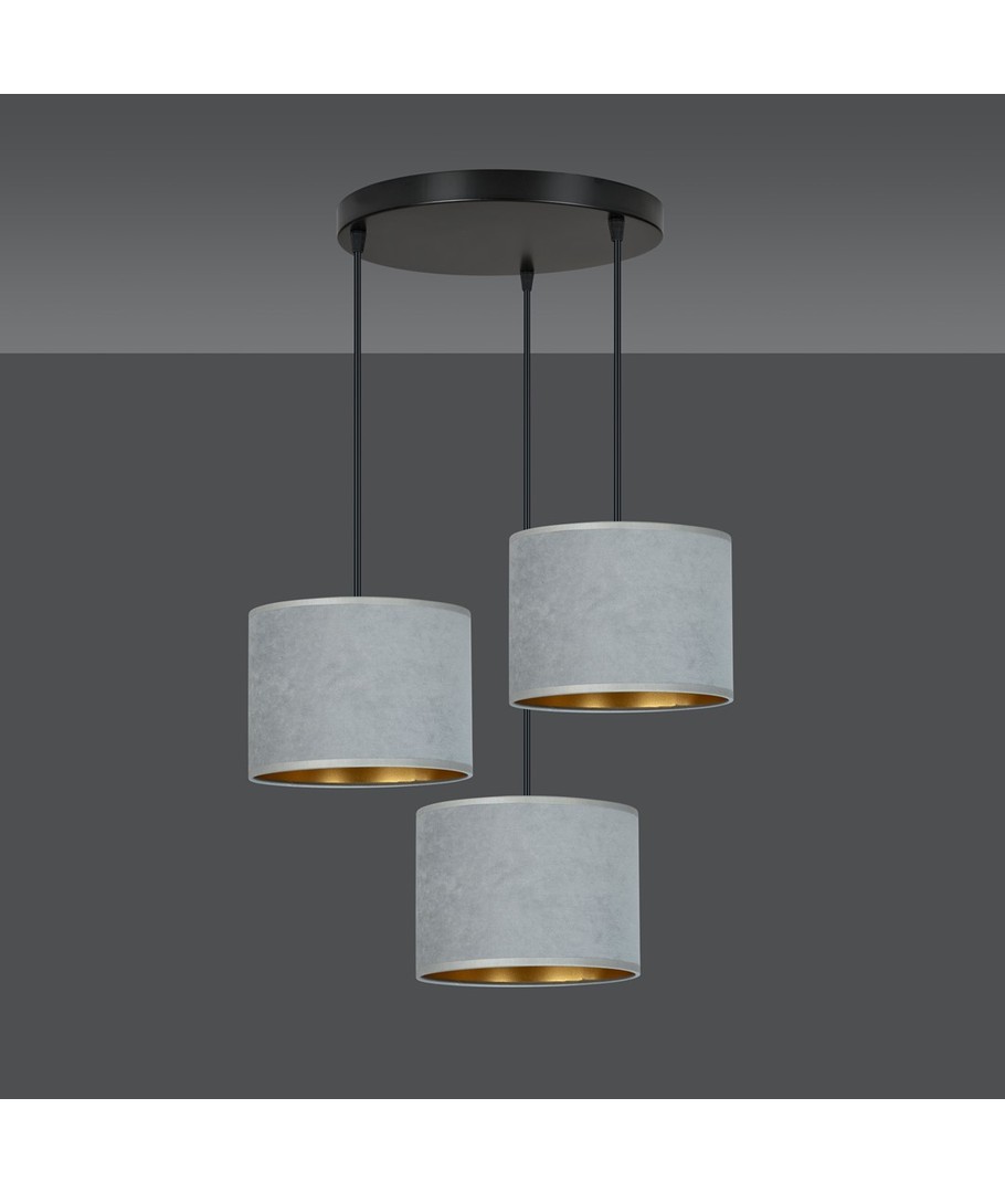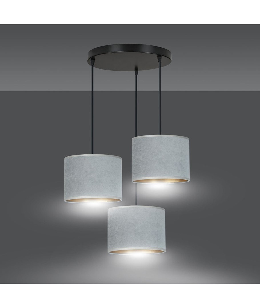 Hilde 3 Sort Premium Grå pendellampe er en elegant og tidløs belysningsløsning, som passer perfekt til både moderne og klassiske interiører. De justerbare ledningene gjør det mulig å tilpasse lampen til individuelle behov, noe som sikrer optimal plassering og lysfordeling i rommet. Lampeskjermene er laget i slitesterkt materiale med en myk fløyelslignende overflate og en gyllen innvendig finish, som sprer en varm glød. Kombinasjonen av det enkle designet og de elegante fargene skaper en allsidig lampe som passer perfekt inn i forskjellige miljøer.