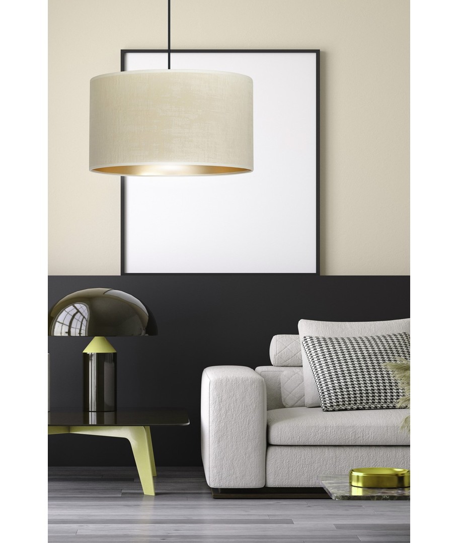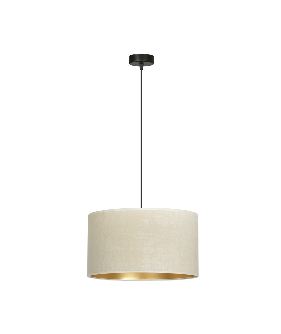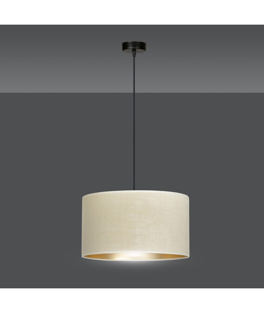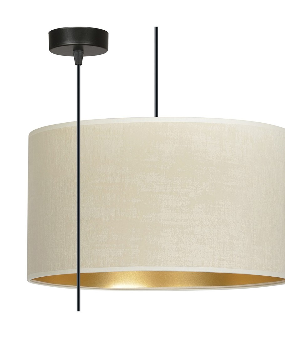 Opplev eleganse og funksjonalitet med Hilde 1 Sort/Hvit pendellampen, som komplementerer både moderne og klassiske interiører. Med en justerbar lengde kan du tilpasse lampens plassering etter dine behov. Lampeskjermen er laget av holdbart materiale med en fløyelsaktig tekstur og en gylden innside, hvilket skaper en varm og behagelig belysning. Det enkle designet og den stilige fargekombinasjonen gjør lampen til et allsidig valg som passer perfekt inn i ethvert rom.