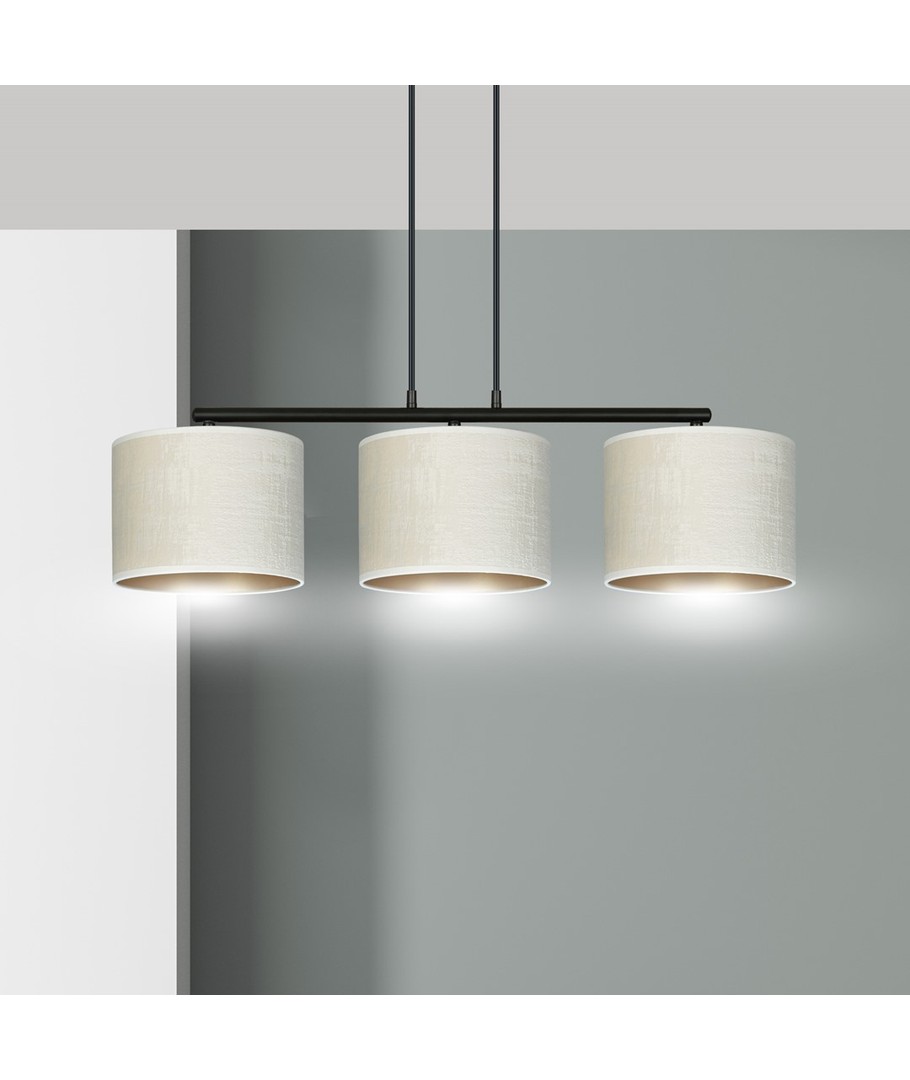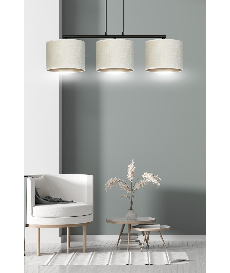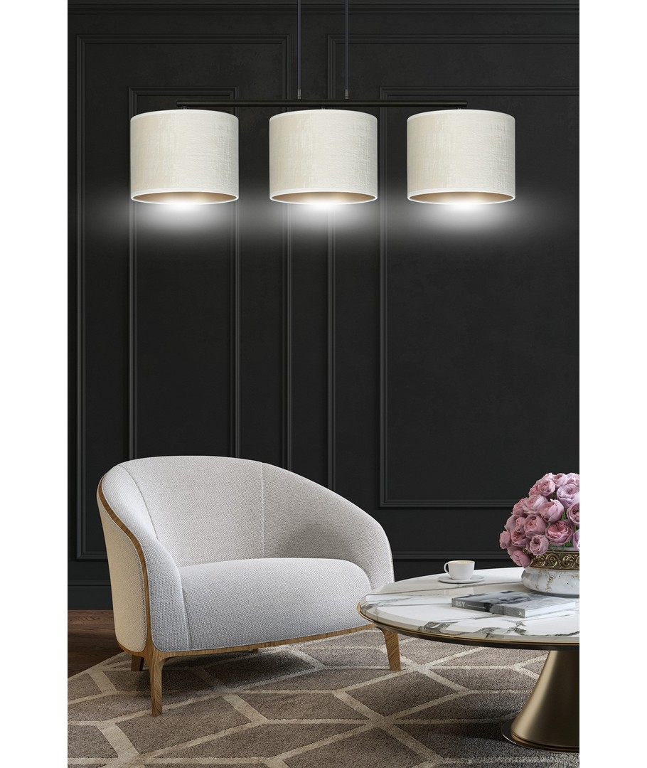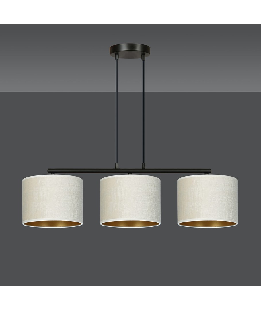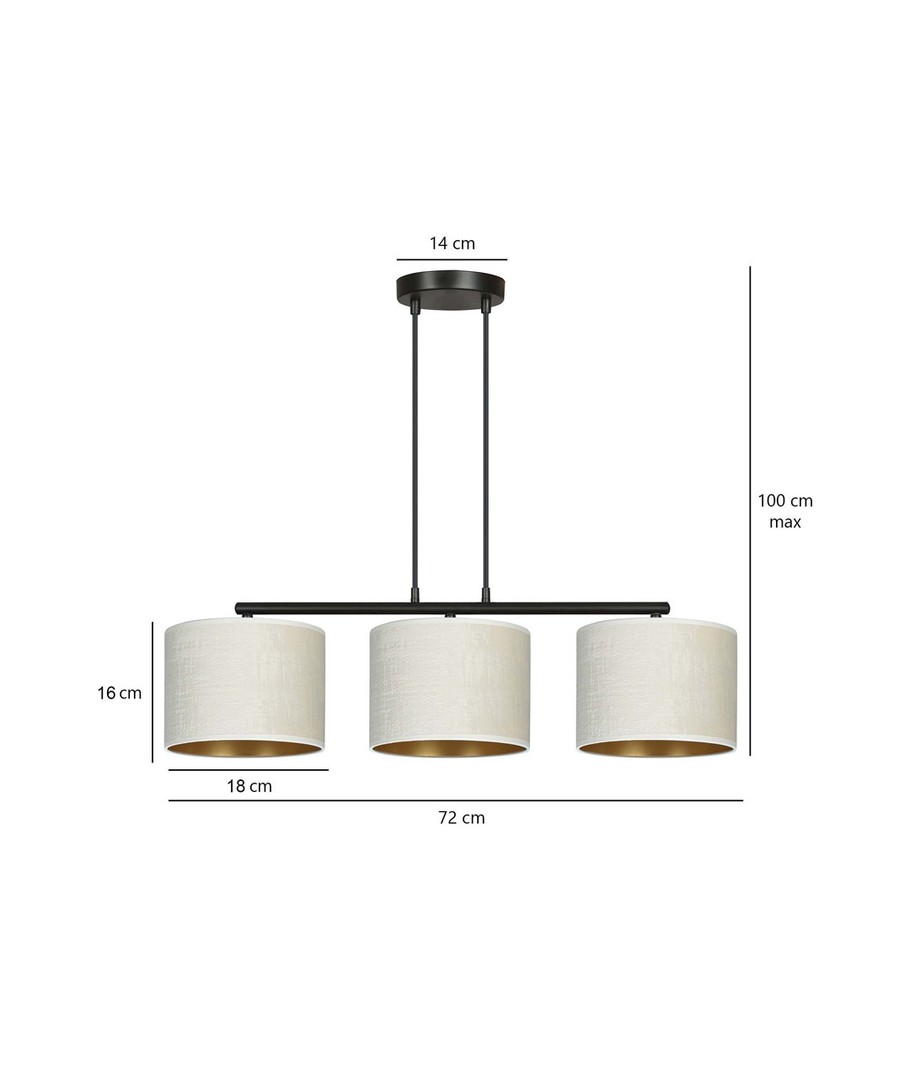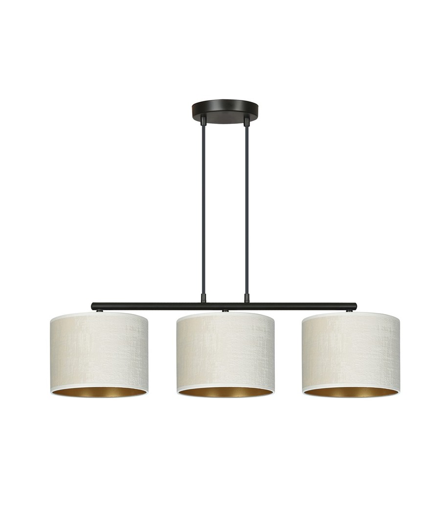 Opplev stilren eleganse med Hilde 3 Sort/Hvit pendellampe, perfekt for både moderne og klassiske interiører. Lampen har tre vakre hvitskjermede lampeskjermer med en indre gulloverflate, som tilfører et snev av luksus til ethvert rom. Den justerbare lengden på ledningene gir mulighet for personlig tilpasning, slik at lampen passer nøyaktig til dine behov. Konstruksjonen er enkel og fargeskjemaet elegant, noe som gjør den til et allsidig valg for ulike rom.