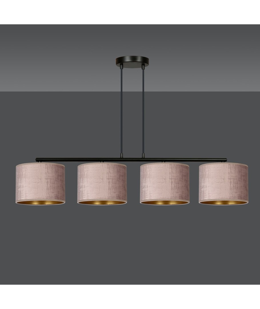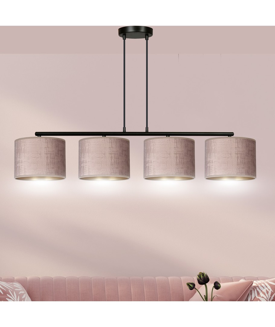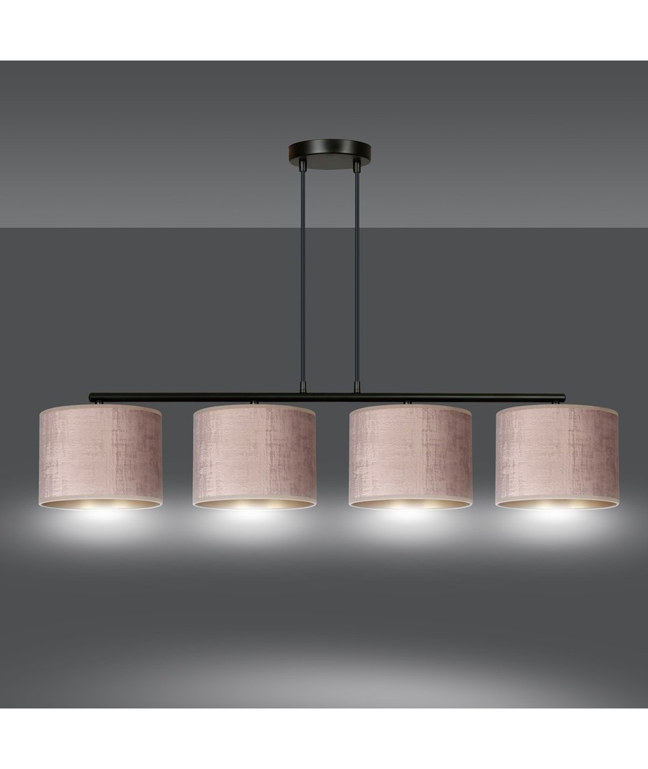 Gjør hjemmet ditt mer elegant med den stilfulle Hilde 4 pendellampe i en kombinasjon av sort og rosa. Denne lampen er perfekt for de som ønsker å legge til et moderne og sofistikert preg i rommet.