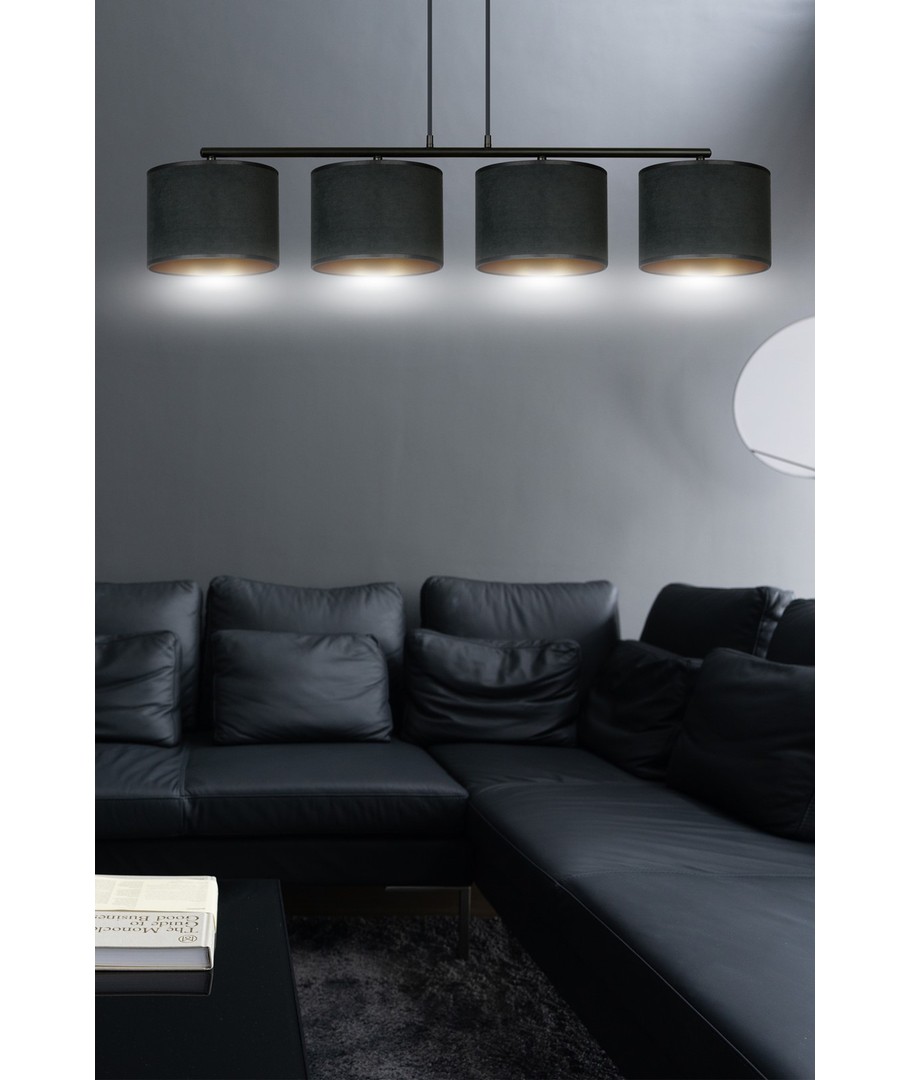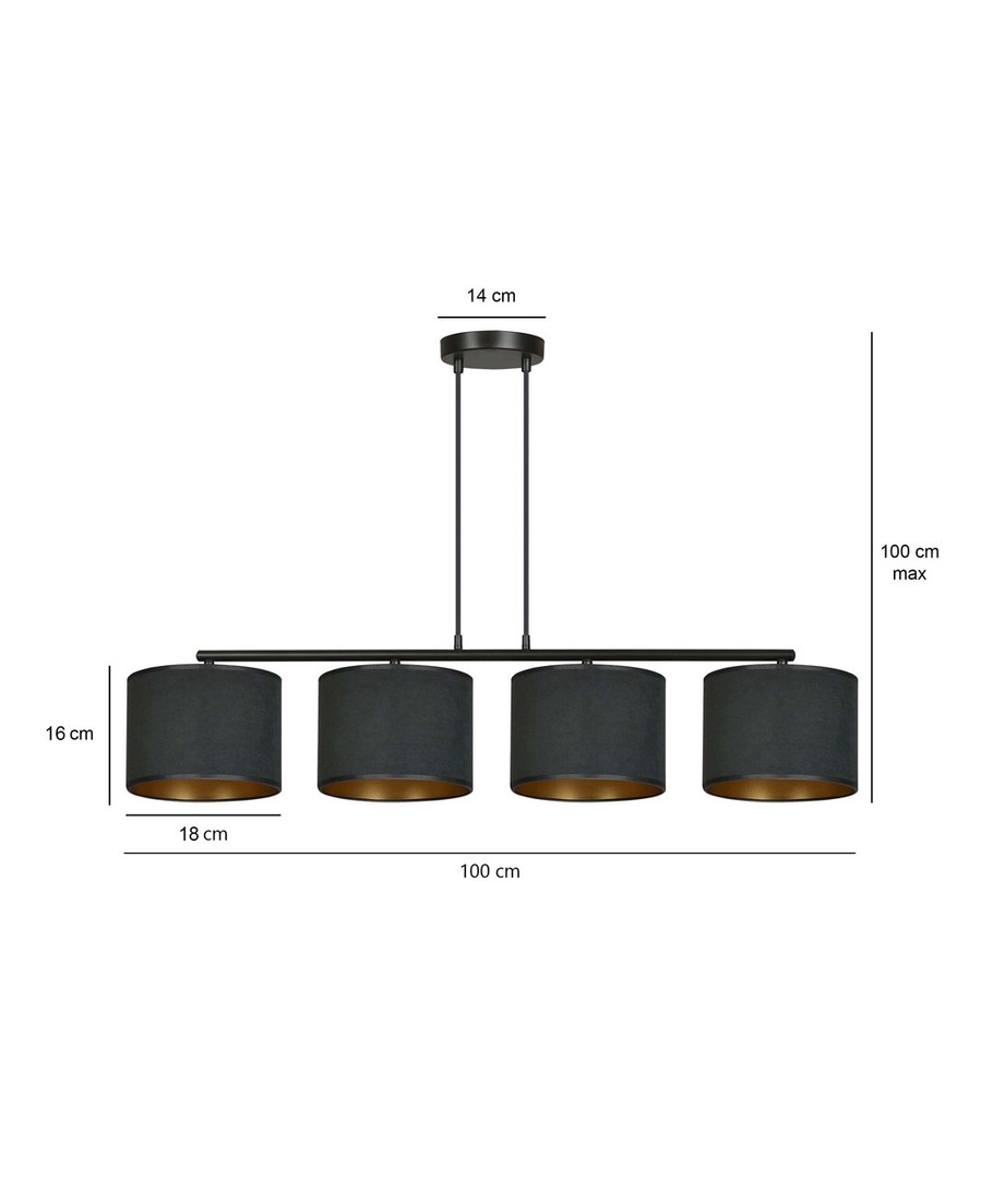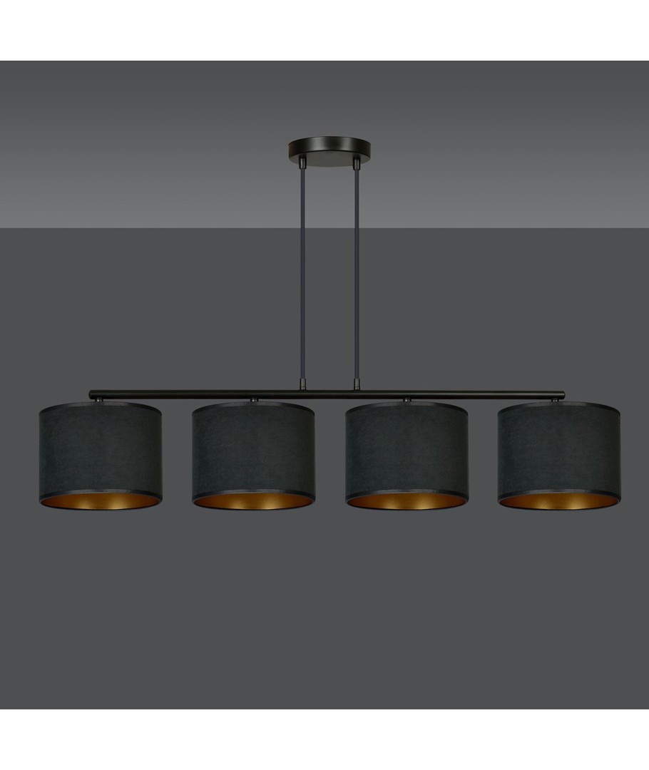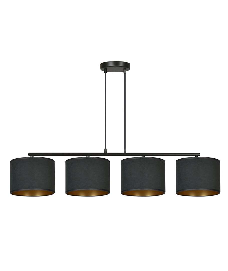 Opplev eleganse og funksjonalitet med Hilde 4 Sort pendellampe. Denne pendellampen er perfekt for både moderne og klassiske interiører, med sin tidløse sorte farge og fløyelstekstur, som gir et luksuriøst preg. De gyldne indre delene av skjermen skaper en varm atmosfære, mens den justerbare lengden gir mulighet for personlig tilpasning etter dine behov. Med sin enkle konstruksjon og elegante design, tilbyr Hilde en stilfull løsning for spisestuer, kjøkken eller stuer.