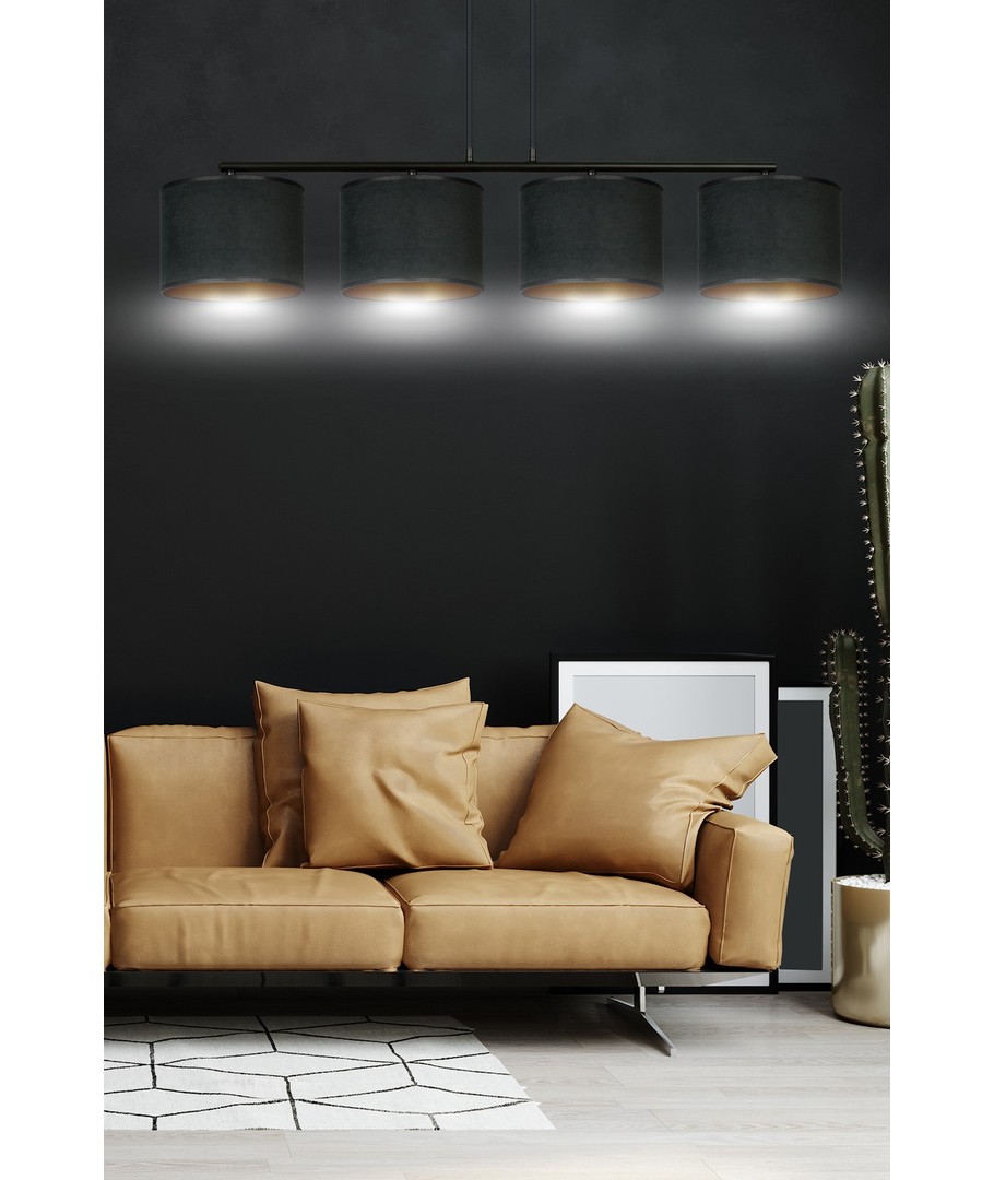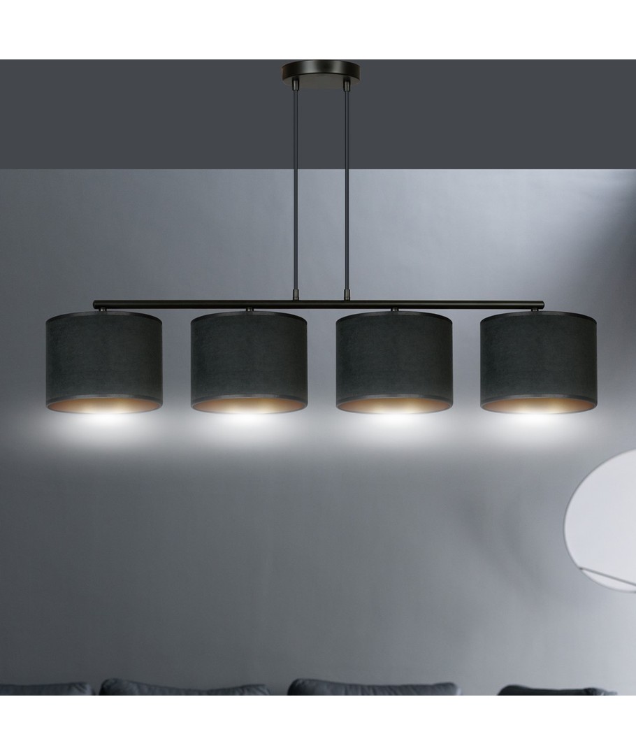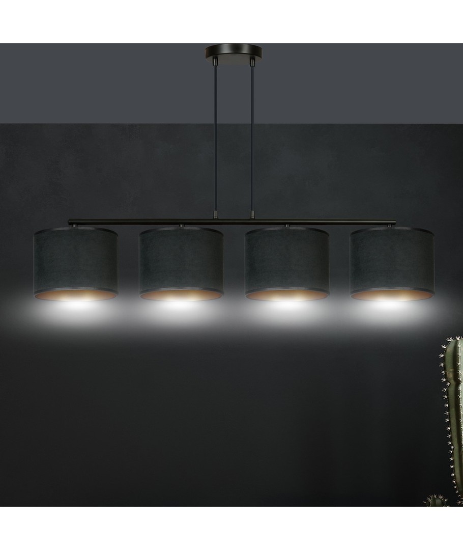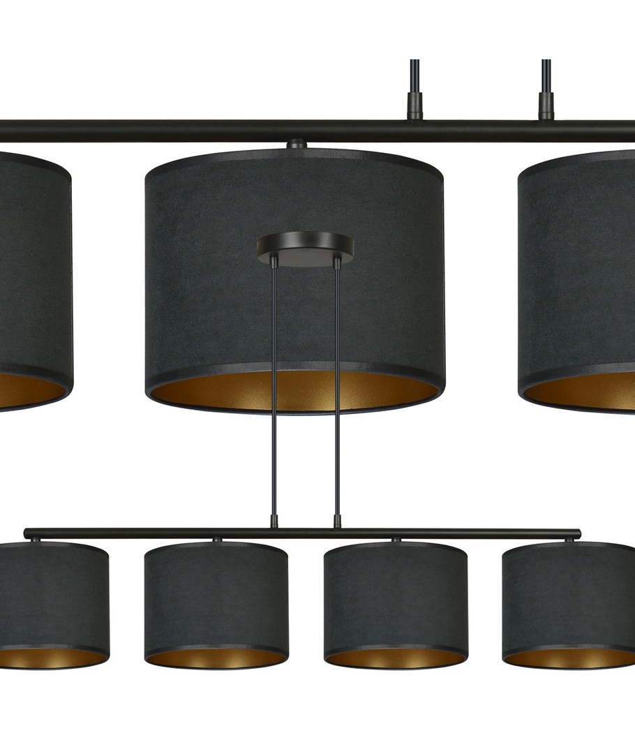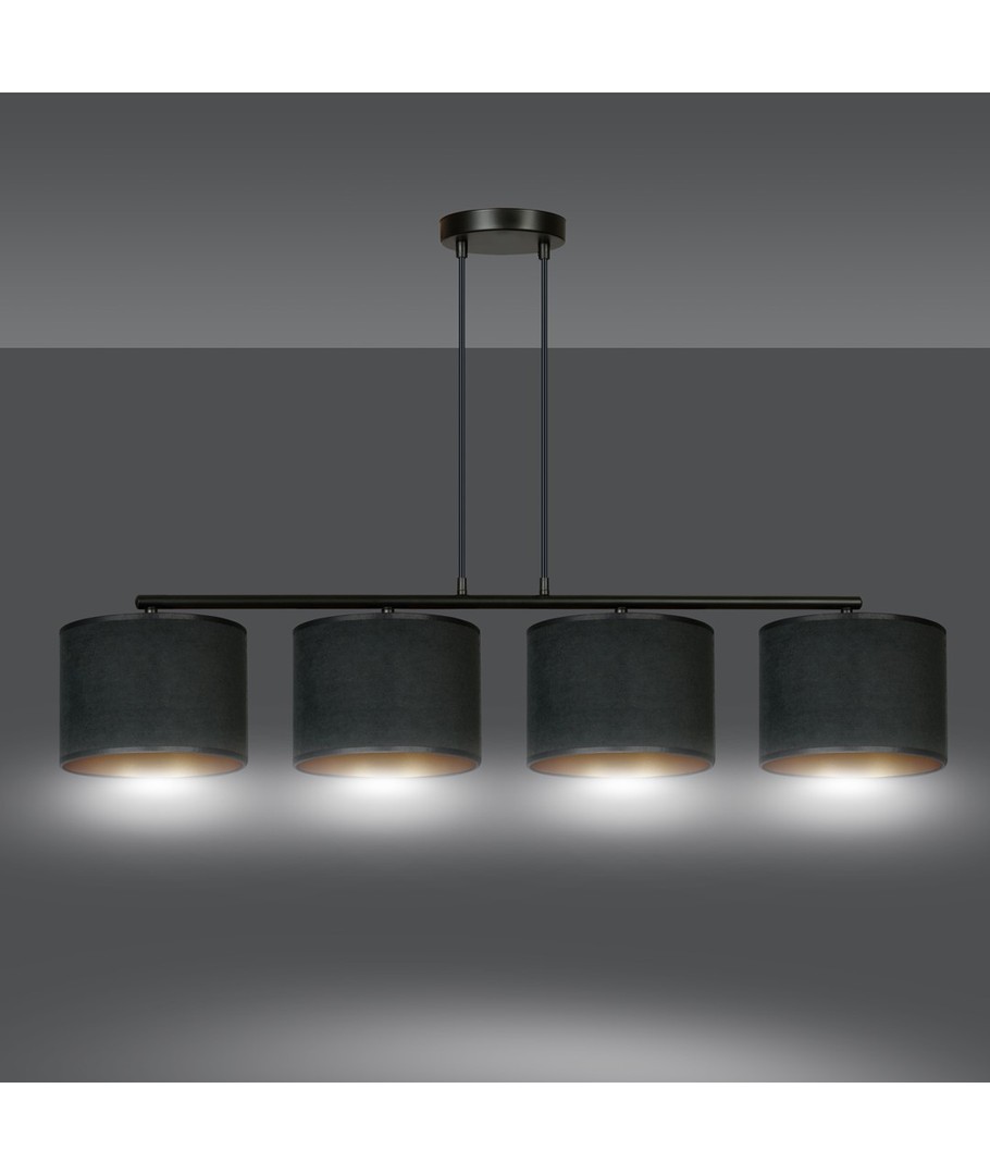 Opplev eleganse og funksjonalitet med Hilde 4 Sort pendellampe. Denne pendellampen er perfekt for både moderne og klassiske interiører, med sin tidløse sorte farge og fløyelstekstur, som gir et luksuriøst preg. De gyldne indre delene av skjermen skaper en varm atmosfære, mens den justerbare lengden gir mulighet for personlig tilpasning etter dine behov. Med sin enkle konstruksjon og elegante design, tilbyr Hilde en stilfull løsning for spisestuer, kjøkken eller stuer.