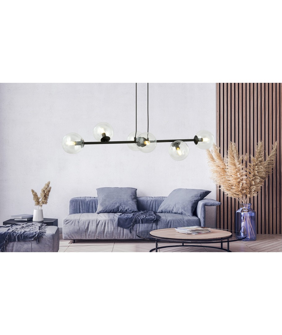 Enhver innredning fortjener en belysning som både tilfører eleganse og funksjonalitet. Denne pendellampen i sort og transparent design er perfekt for å skape en moderne og sofistikert atmosfære i ditt hjem.