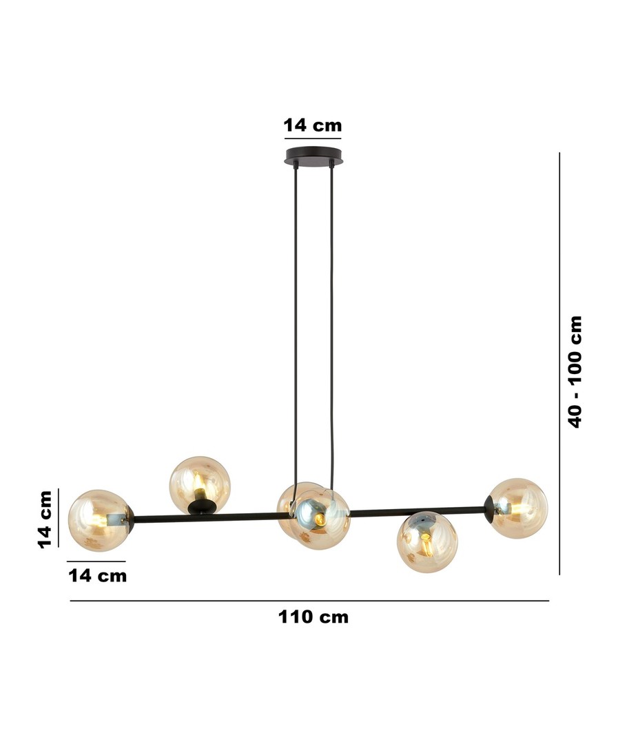 Dimensjoner:Med sort og amber fargetoner skaper lampen en innbydende atmosfære, samtidig som den gir godt lys. Den er ideell for spisestuer, stuer eller andre områder hvor du ønsker et hint av eleganse.