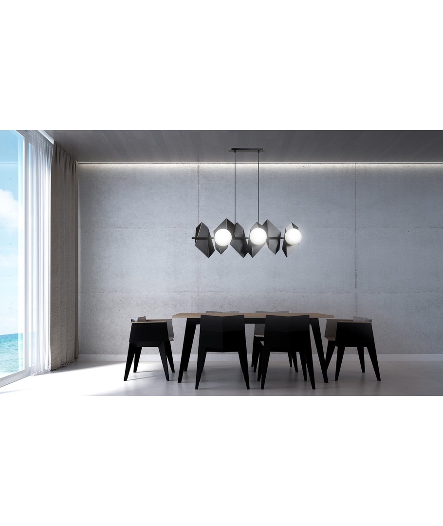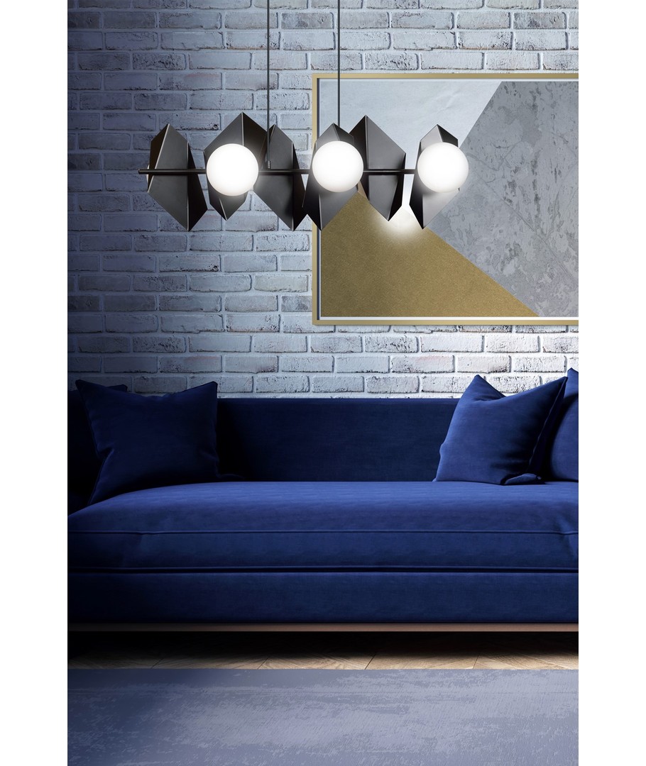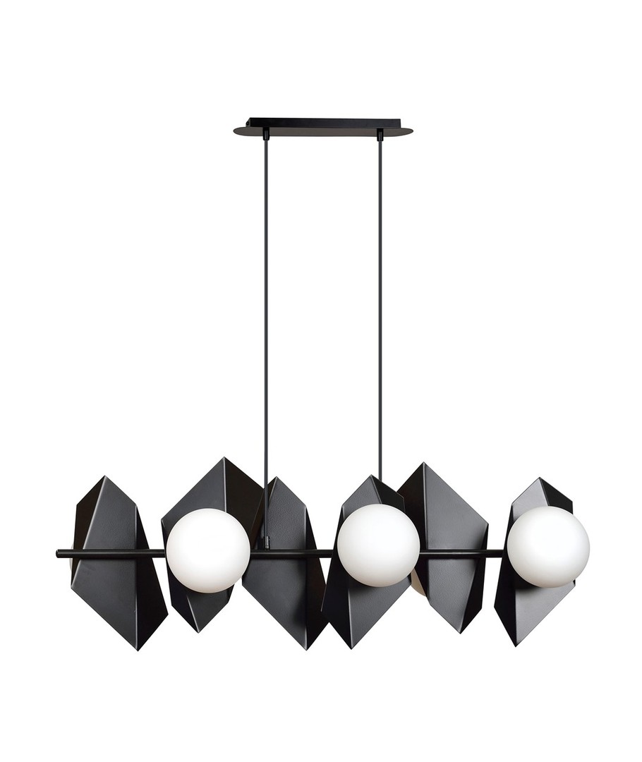 Opplev den moderne elegansen med Drifton 6 Sort pendellampe, som kombinerer innovasjon og stil. Denne pendellampen har en unik geometrisk metallstruktur som straks fanger oppmerksomheten og tilfører et spennende, dekorativt element til hjemmet ditt. Med sitt sorte pulverlakkerte stål og hvite glasskjermer, er Drifton ikke bare en lyskilde, men et kunstverk som beriker innredningen din. Lampens justerbare høyde gjør den til et fleksibelt valg som passer til mange typer rom og behov.
