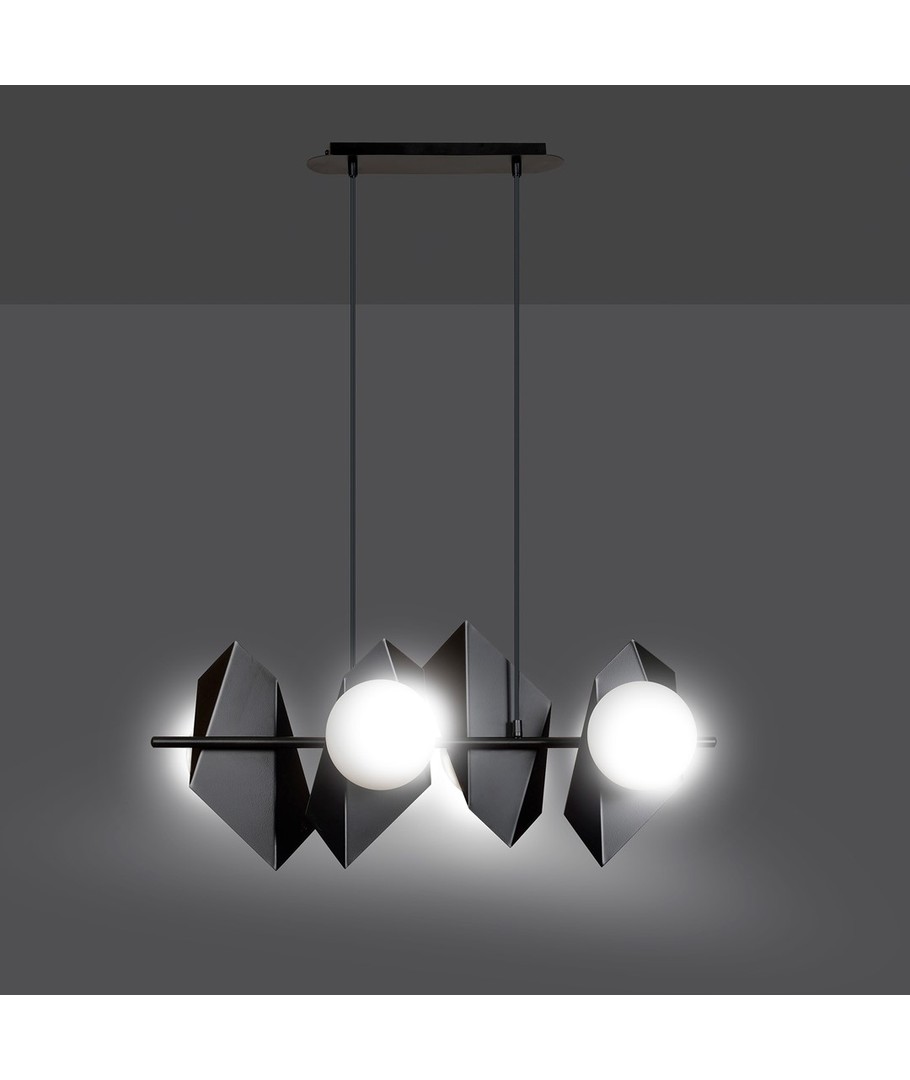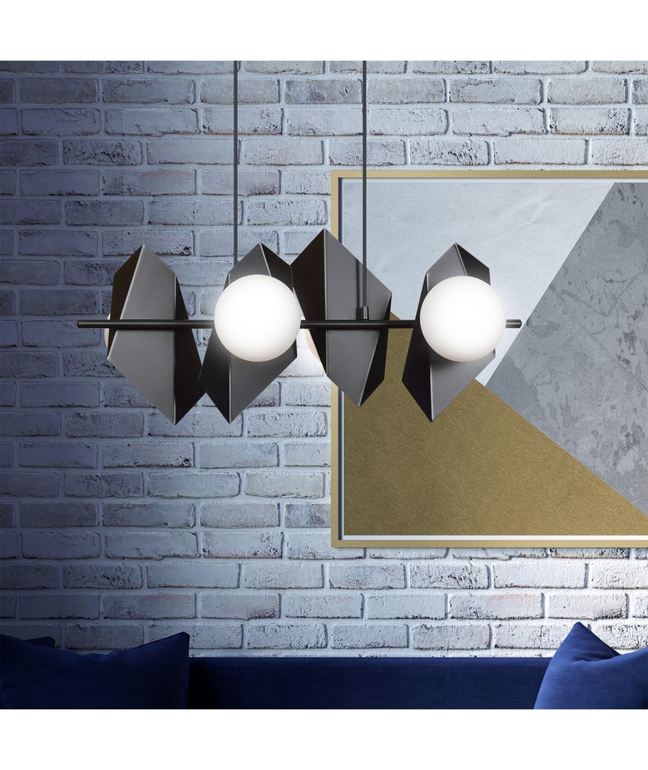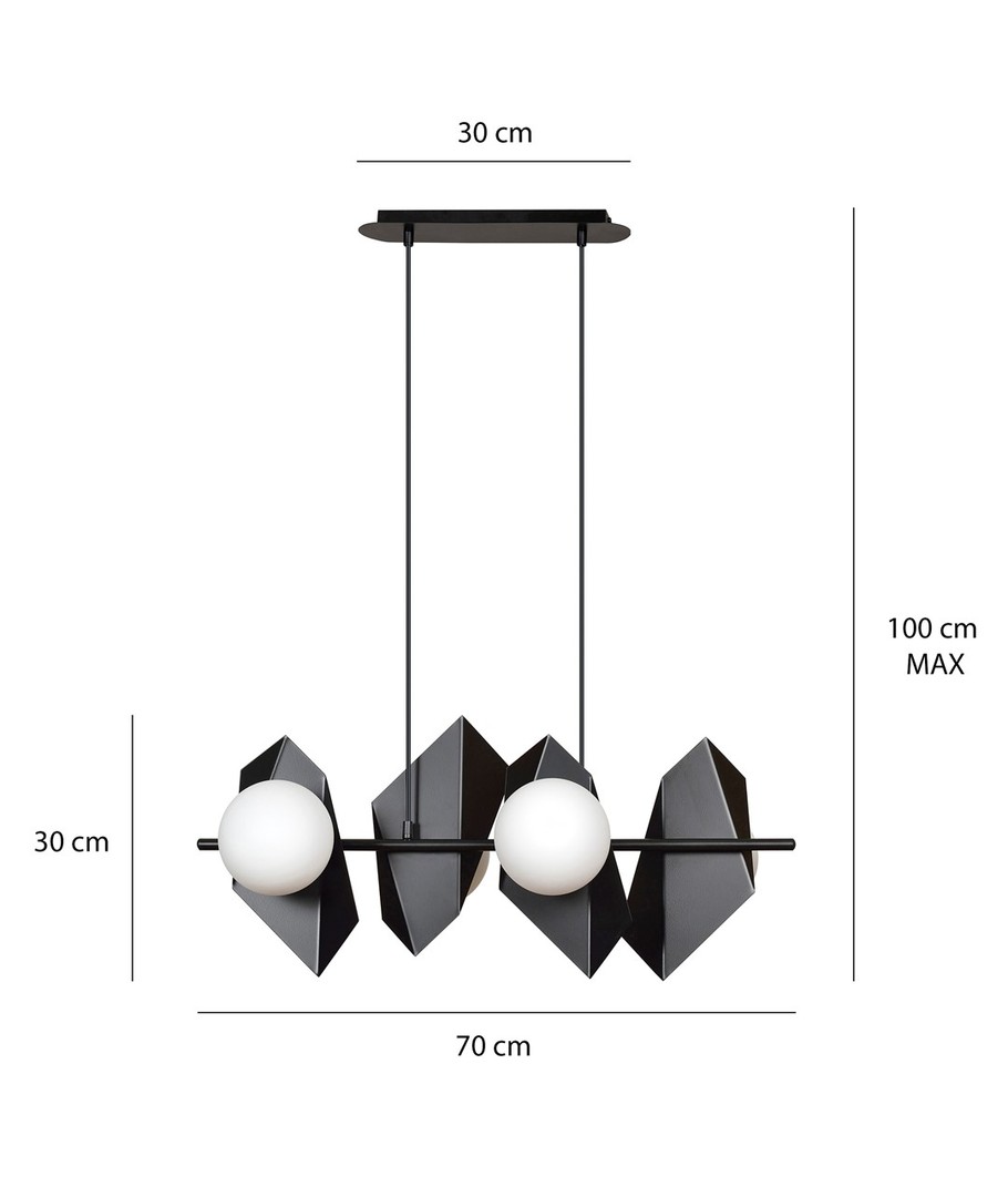 Drifton 4 Sort pendellampe er en moderne og stilfull løsning til ditt hjem. Med sin unike geometriske form og elegante design bringer den flair og personlighet til ethvert rom. Lampens pulverlakkerte stålstruktur kombinert med hvite lampeskjermer skaper et iøynefallende uttrykk.