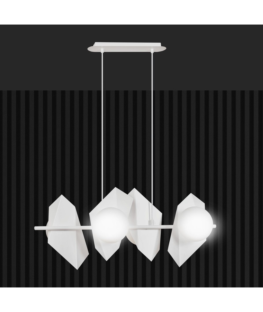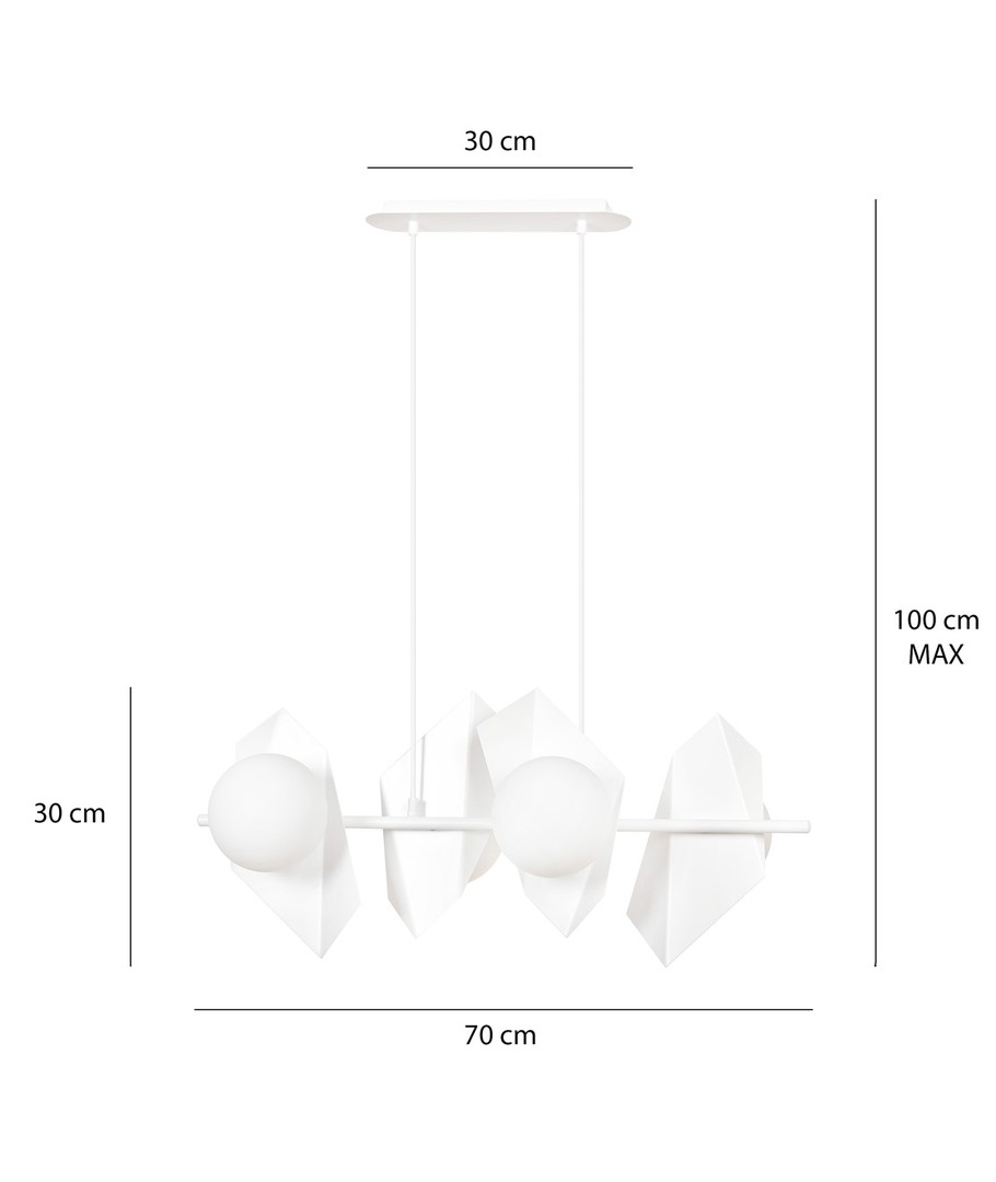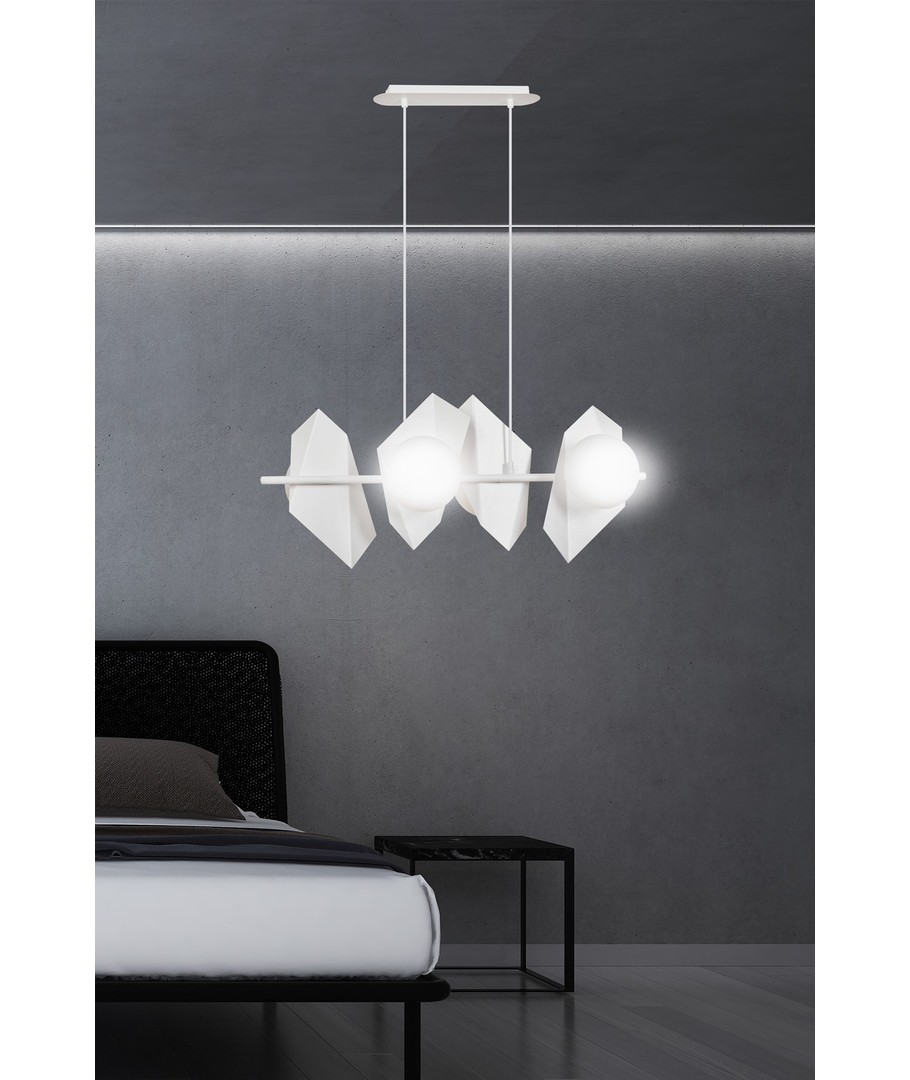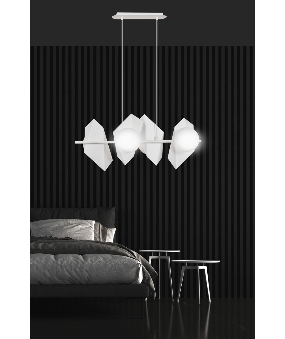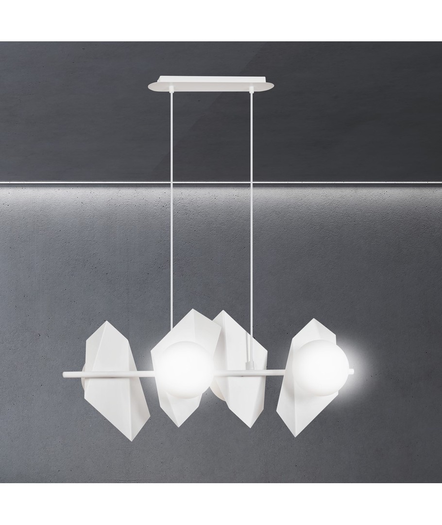 Opplev den moderne elegansen med Drifton 4 Hvit pendellampe. Med sitt unike geometriske design vil denne lampen helt sikkert tiltrekke oppmerksomhet og fungere som et fremtredende element i ethvert rom. Den er ideell for dem som søker en sofistikert og stilren belysningsløsning.