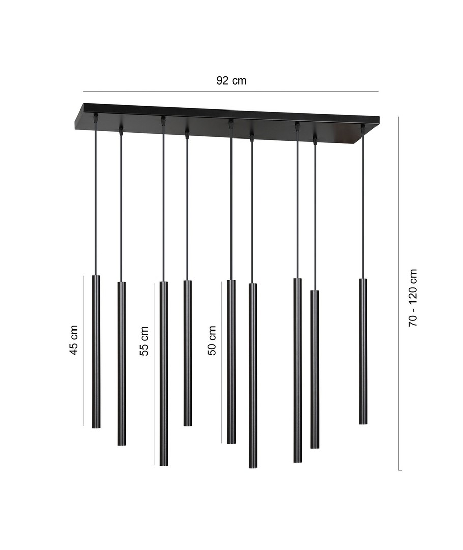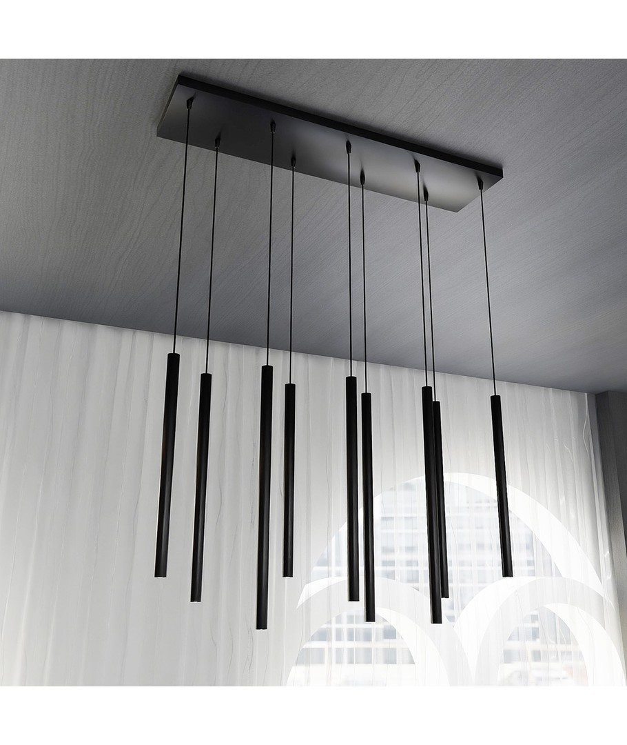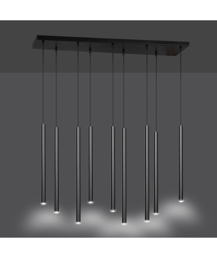 Selter 9 Sort pendellampe er den perfekte løsningen for deg som ønsker et moderne og stilfullt utseende til hjemmet ditt. Denne ultramoderne taklampen er preget av lange metallblader og en slank, elegant struktur som tilfører ethvert rom en unik touch. Med sitt lette og originale design er Selter-serien ideell for de som søker utradisjonelle løsninger og en iøynefallende stil. Uansett om du plasserer den i spisestuen, stuen eller entréen, vil denne lampen imponere med sin sofistikerte estetikk.