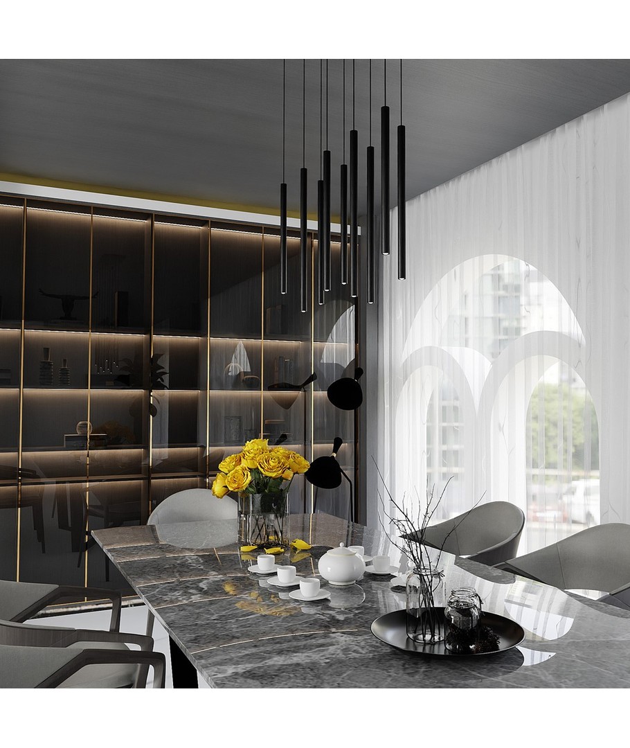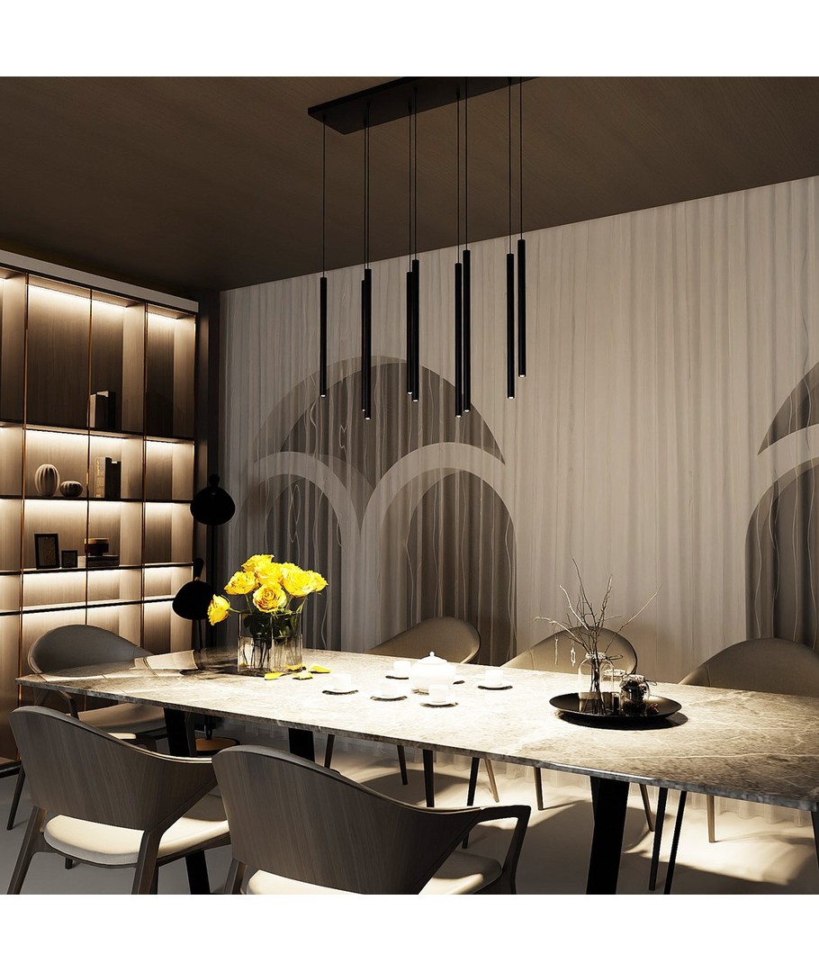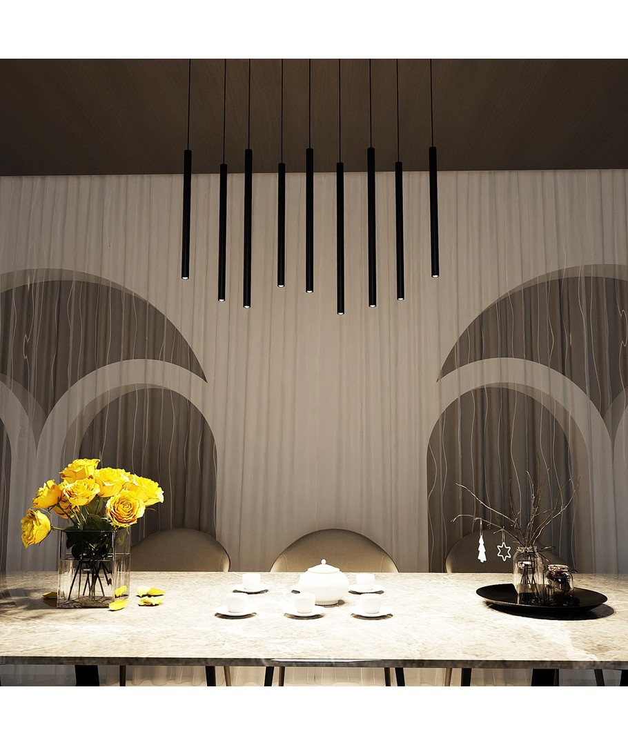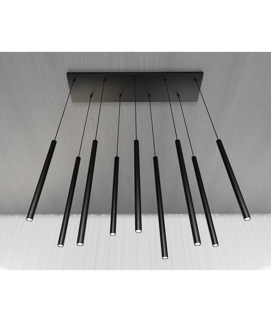 Selter 9 Sort pendellampe er den perfekte løsningen for deg som ønsker et moderne og stilfullt utseende til hjemmet ditt. Denne ultramoderne taklampen er preget av lange metallblader og en slank, elegant struktur som tilfører ethvert rom en unik touch. Med sitt lette og originale design er Selter-serien ideell for de som søker utradisjonelle løsninger og en iøynefallende stil. Uansett om du plasserer den i spisestuen, stuen eller entréen, vil denne lampen imponere med sin sofistikerte estetikk.