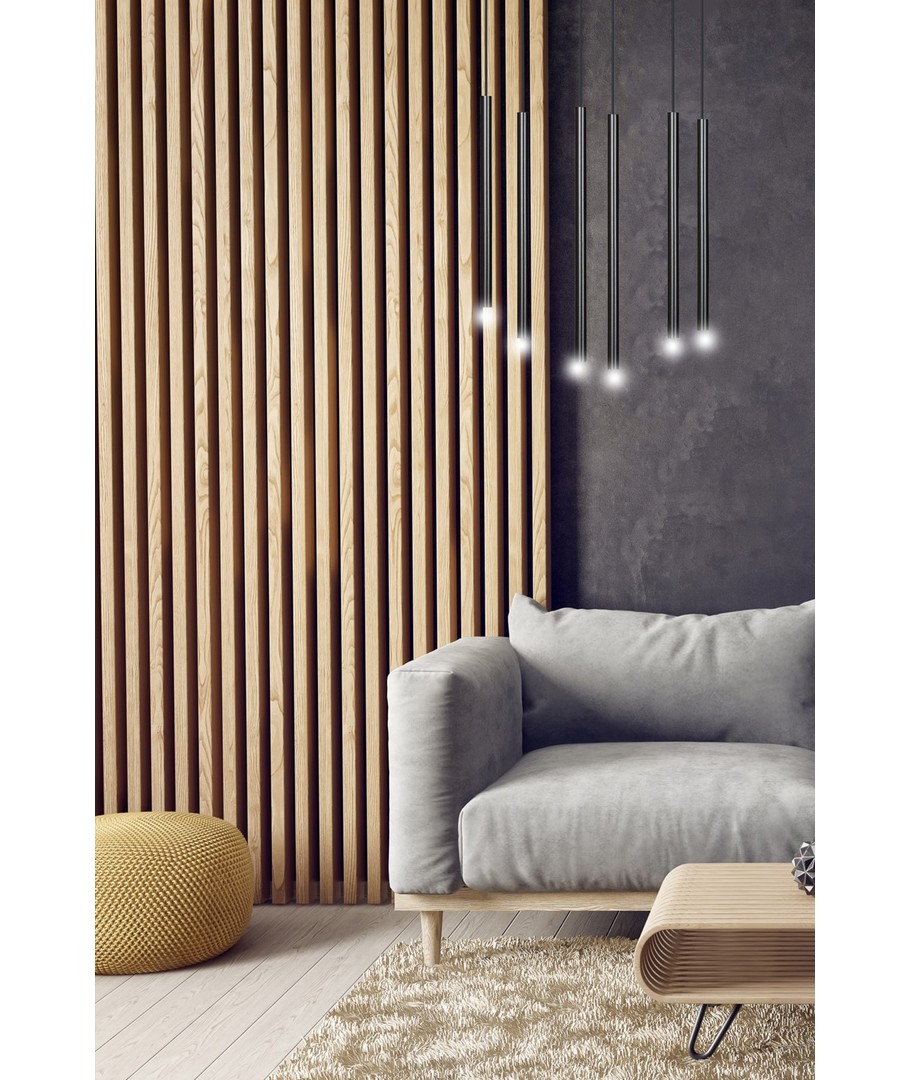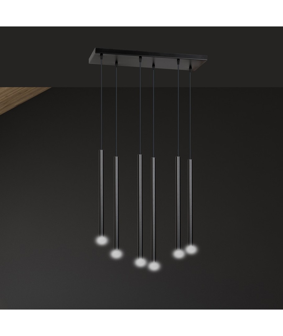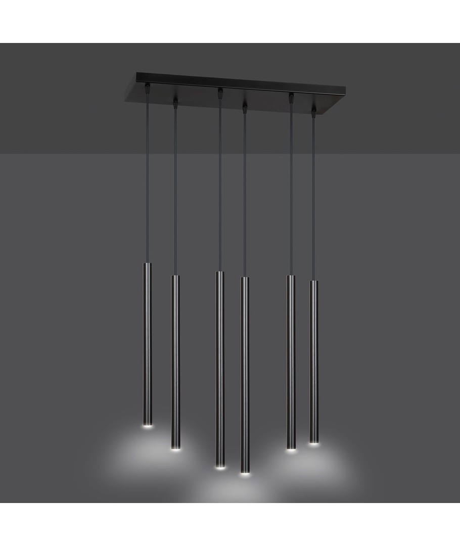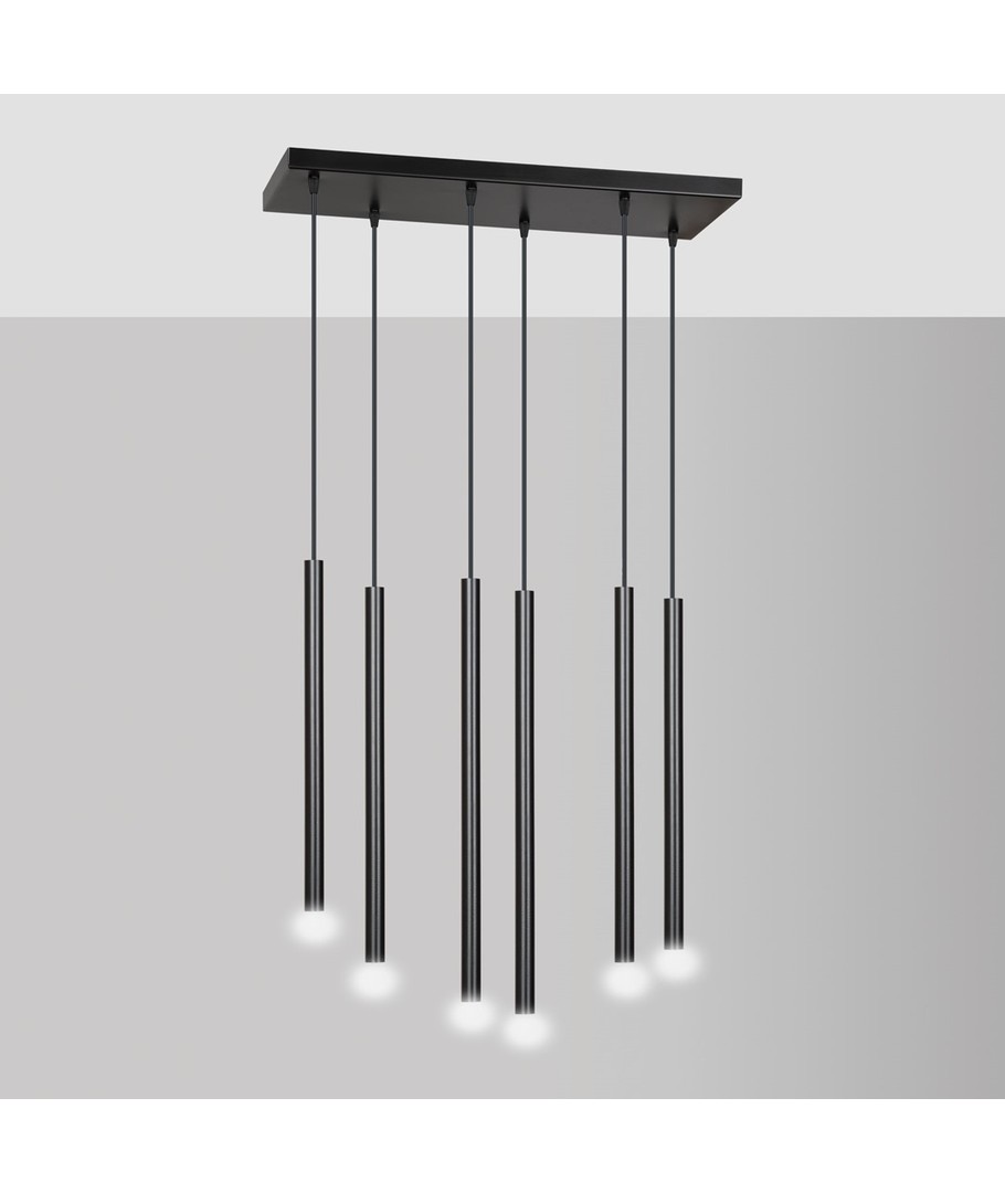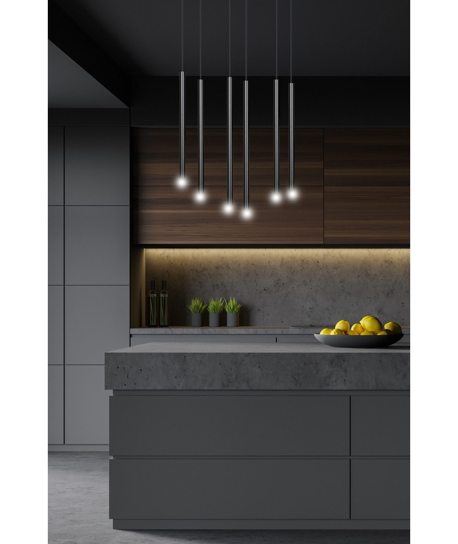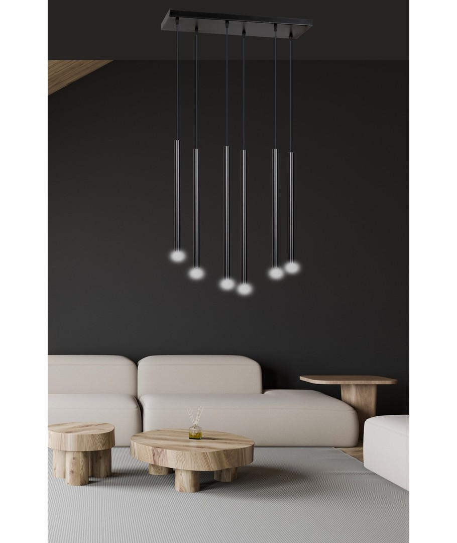 Selter 6 Sort pendellampe er en ultramoderne taklampe som imponerer med sine lange, slanke metalarmer og elegante struktur. Designet fremstår lett og ekstremt originalt, noe som gjør den til et utmerket valg for de som søker utradisjonelle løsninger og en trendy, distinkt stil. Optimal for moderne interiør, der stil og funksjonalitet møtes.